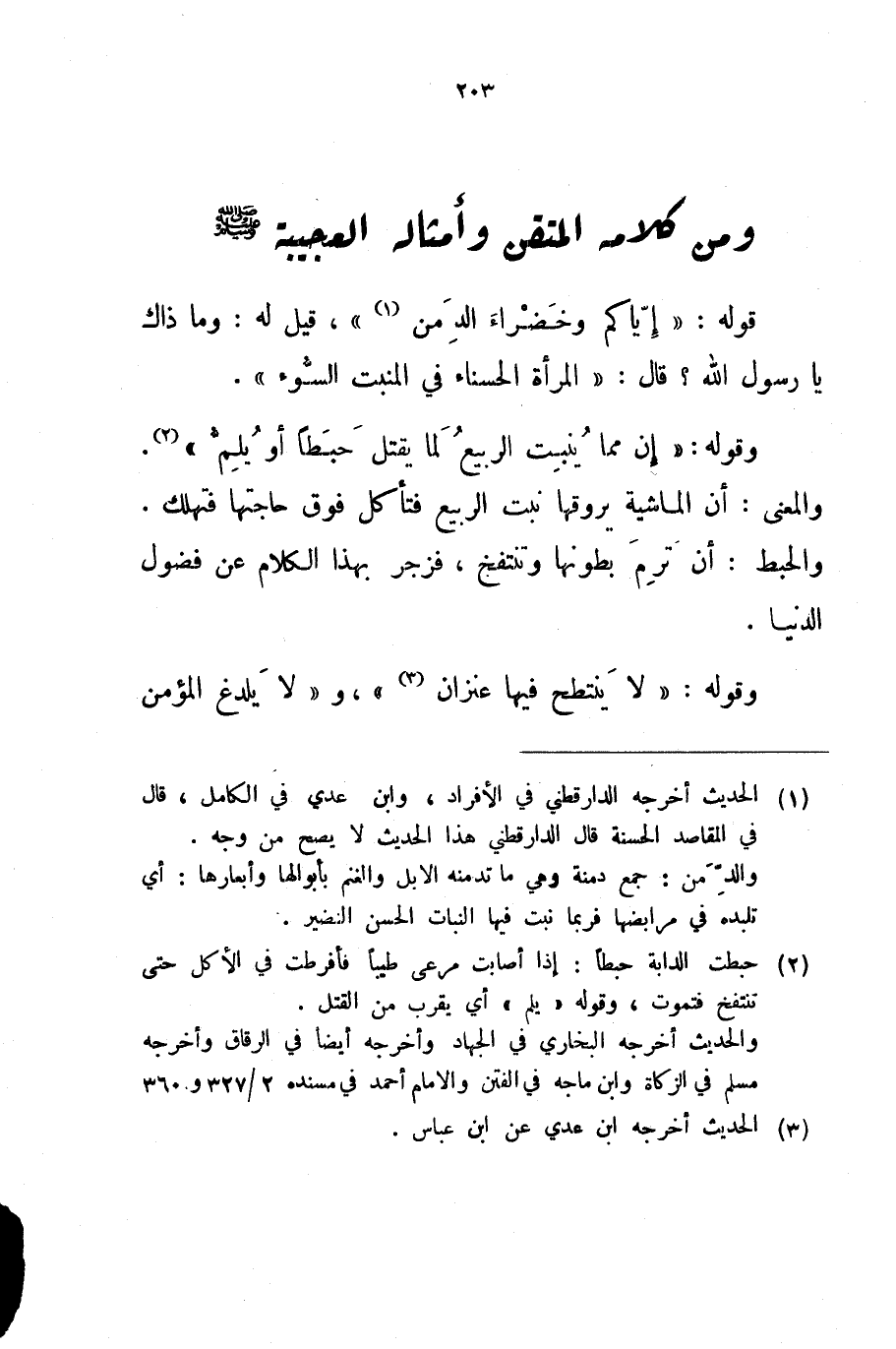 ومن كلامه المتقن وأمثاله العجيبة صلى الله عليه و سلم