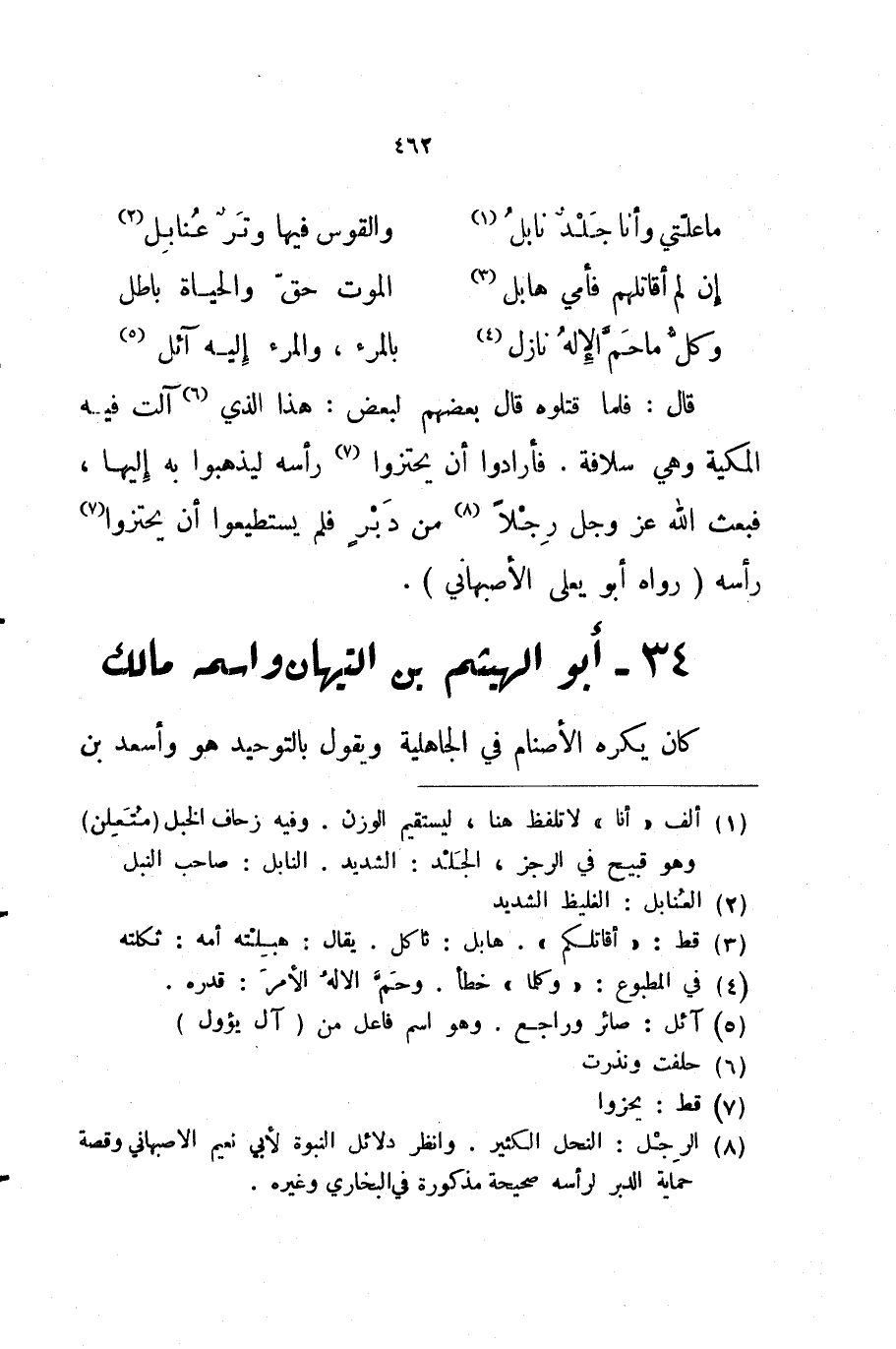 قال فلما قتلوه قال بعضهم لبعض هذا الذي آلت فيه المكية وهي سلافة فأرادوا أن يحتزوا رأسه ليذهبوا به إليها فبعث الله عز و جل رجلا من دبر فلم يستطيعوا أن يحتزوا رأسه رواه أبو يعلى الأصبهاني 34 أبو الهيثم بن التيهان واسمه مالك