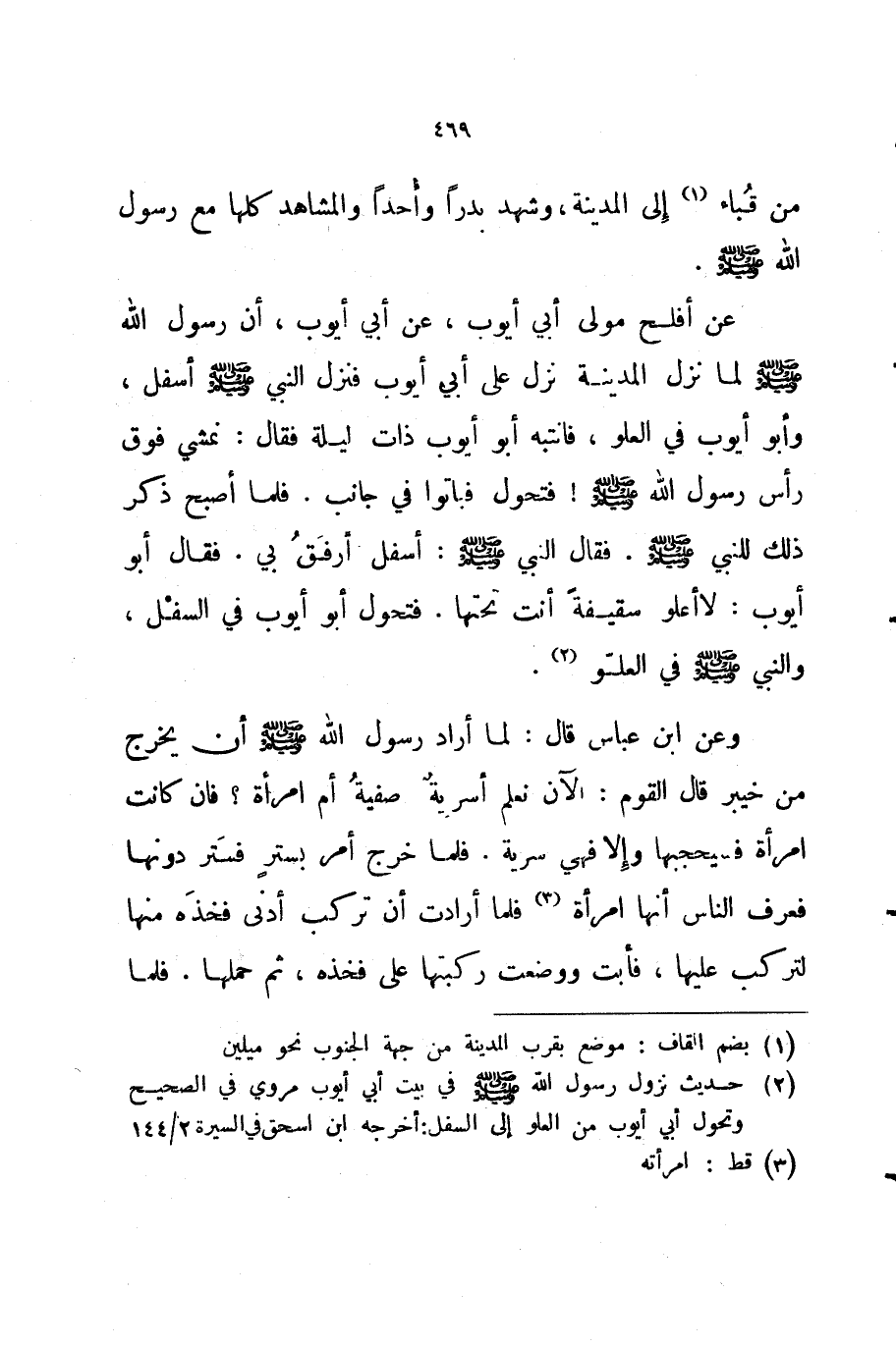 عن أفلح مولى أبي أيوب عن أبي أيوب أن رسول الله صلى الله عليه و سلم لما نزل المدينة نزل على أبي أيوب فنزل النبي صلى الله عليه و سلم أسفل وأبو أيوب في العلو فانتبه أبو أيوب ذات ليلة فقال نمشي فوق رأس رسول الله صلى الله عليه و سلم فتحول فباتوا في جانب فلما أصبح ذكر ذلك للنبي صلى الله عليه و سلم فقال النبي صلى الله عليه و سلم أسفل أرفق بي فقال أبو أيوب لا أعلو سقيفة أنت تحتها فتحول أبو أيوب في السفل والنبي صلى الله عليه و سلم في العلو