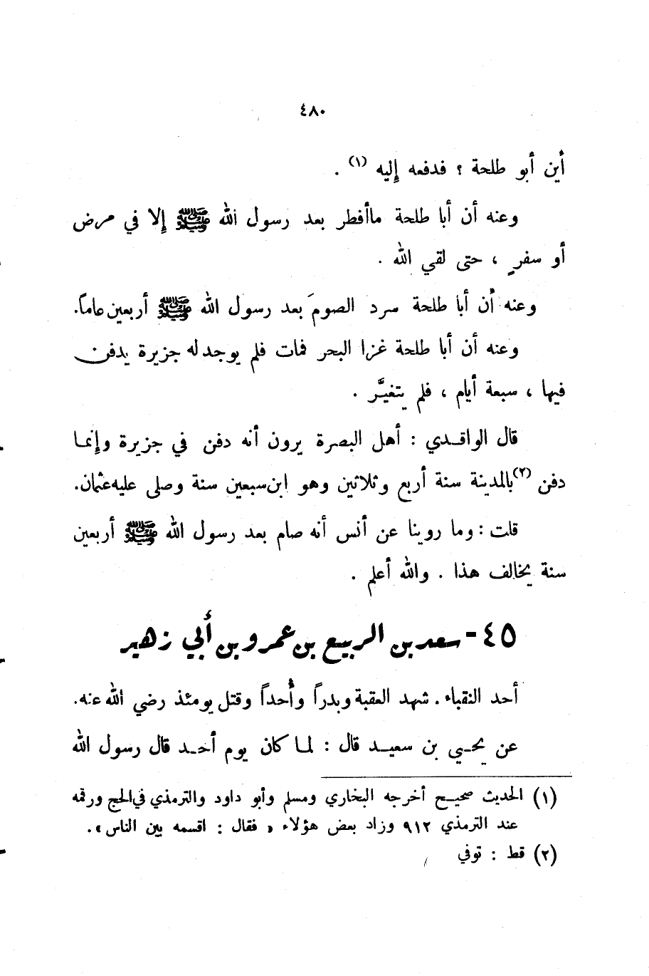 قلت وما روينا عن أنس أنه صام بعد رسول الله صلى الله عليه و سلم أربعين سنة يخالف هذا والله أعلم 45 سعد بن الربيع بن عمرو بن أبي زهير