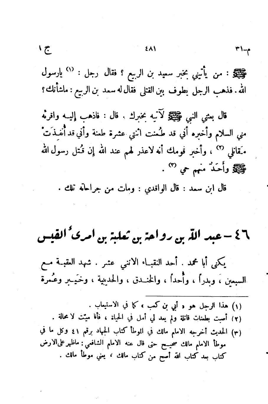 قال ابن سعد قال الواقدي ومات من جراحاته تلك 46 عبد الله بن رواحة بن ثعلبة بن امرىء القيس