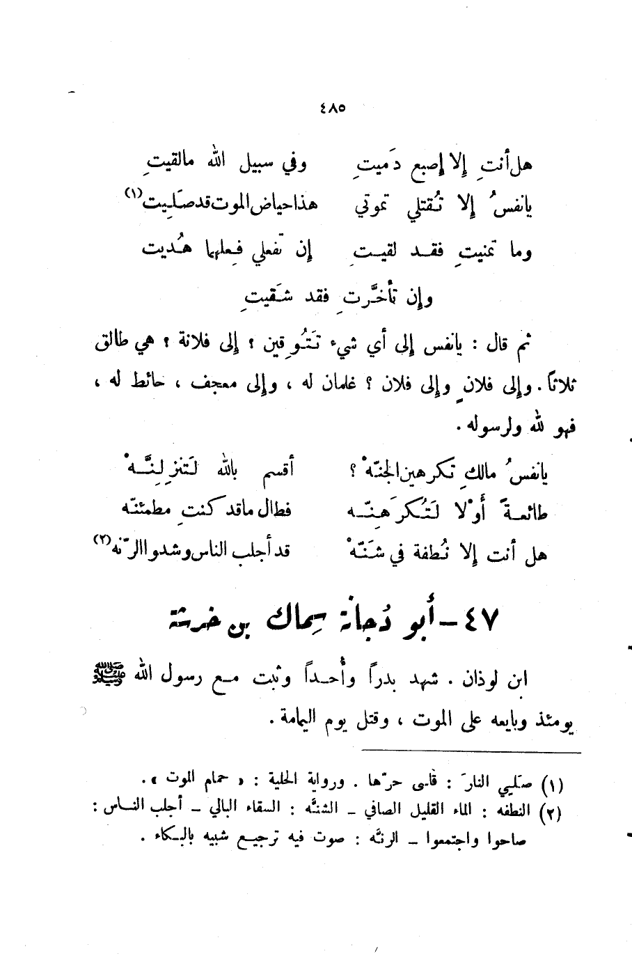 هل أنت إلا نطفة في شنه ... قد أجلب الناس وشدوا الرنة 47 أبو دجانة سماك بن خرشة