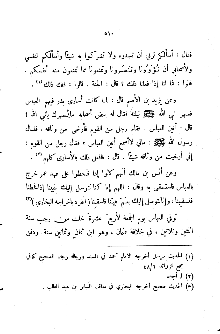 وعن أنس بن مالك أنهم كانوا إذا قحطوا على عهد عمر خرج بالعباس فاستسقى به وقال اللهم إنا كنا نتوسل إليك بنبينا إذا قحطنا فتسقينا وإنا نتوسل إليك بعم نيينا فاسقنا انفرد بإخراجه البخاري