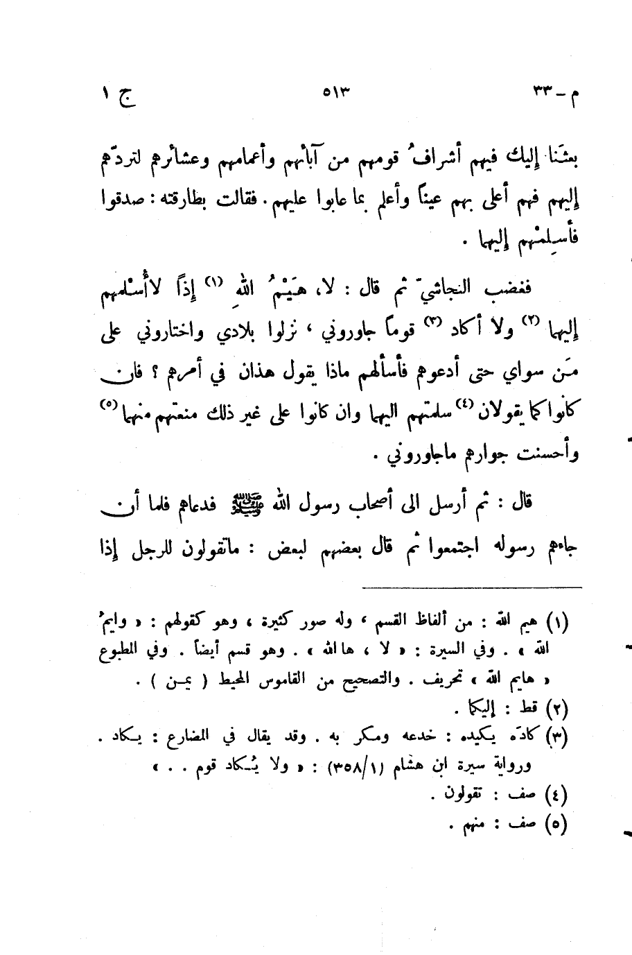 فغضب النجاشي ثم قال لا هيم الله إذا لا أسلمهم إليهما ولا أكاد قوما جاوروني نزلوا بلادي واختاروني على من سواي حتى أدعوهم فأسألهم ماذا يقول هذان في أمرهم فان كانوا كما يقولان سلمتهم إليهما وإن كانوا على غير ذلك منعتهم منهما وأحسنت جوارهم ما جاوروني