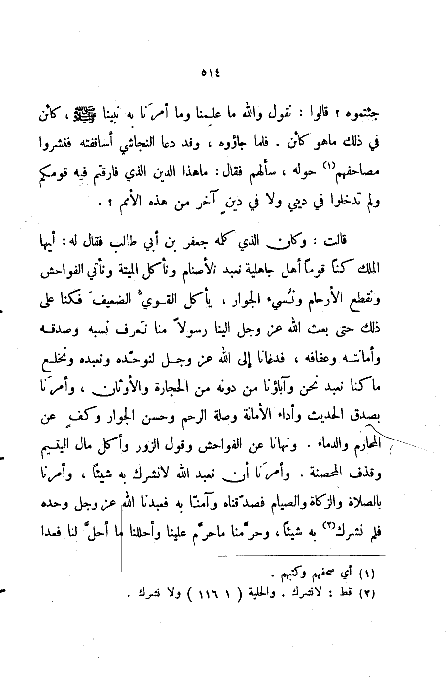 جئتموه قالوا نقول والله ما علمنا وما أمرنا به نبينا صلى الله عليه و سلم كائن في ذلك ما هو كائن فلما جاؤوه وقد دعا النجاشي أساقفته فنشروا مصاحفهم حوله سألهم فقال ما هذا الدين الذي فارقتم فيه قومكم ولم تدخلوا في ديني ولا في دين آخر من هذه الأمم