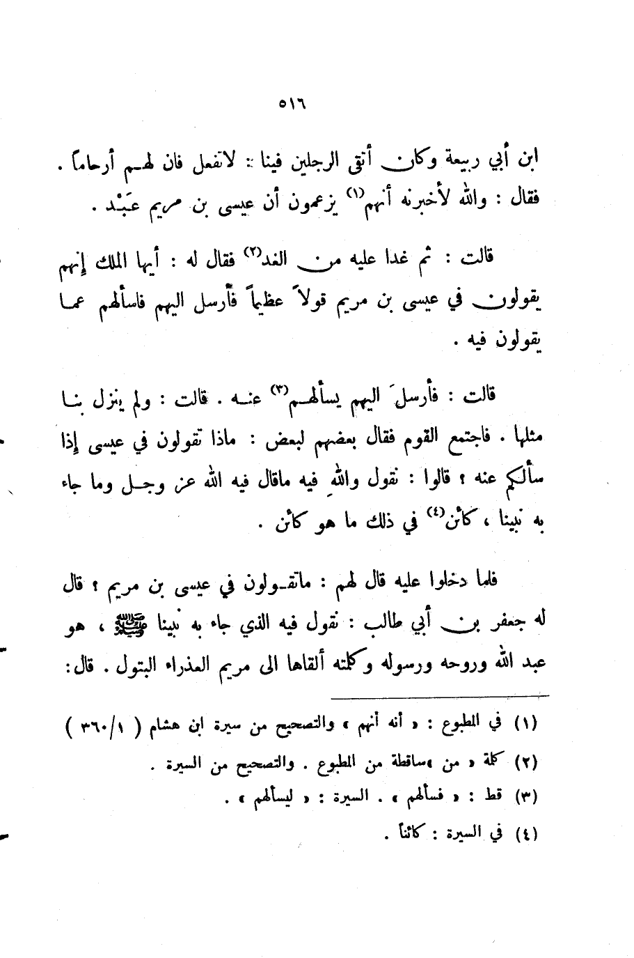 فلما دخلوا عليه قال لهم ما تقولون في عيسى بن مريم قال له جعفر بن أبي طالب نقول فيه الذي جاء به نبينا صلى الله عليه و سلم هو عبد الله وروحه ورسوله وكلمته ألقاها إلى مريم العذراء البتول قال