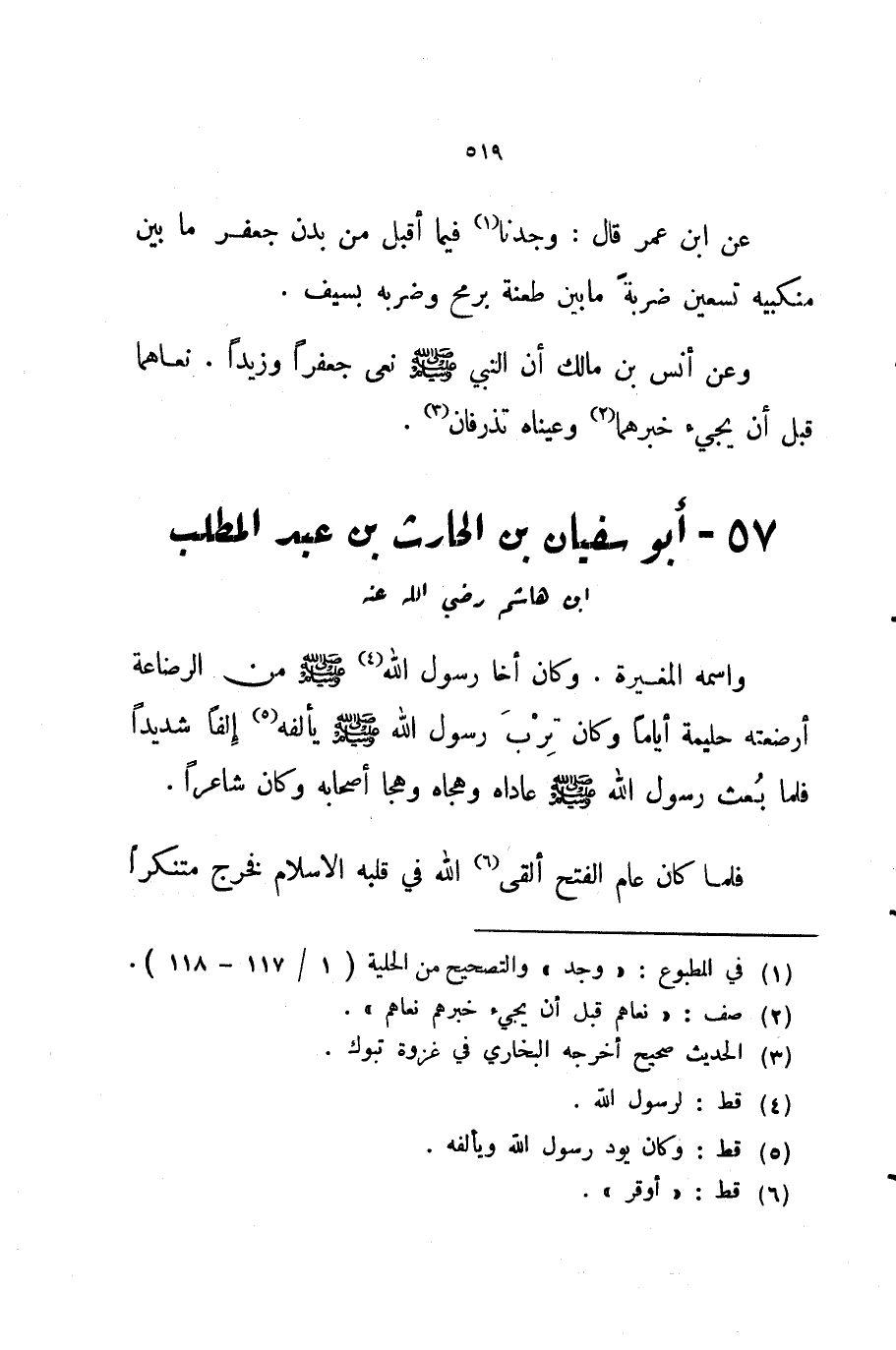 وعن أنس بن مالك أن النبي صلى الله عليه و سلم نعى جعفرا وزيدا نعاهما قبل أن يجيء خبرهما وعيناه تذرفان 57 أبو سفيان بن الحارث بن عبد المطلبابن هاشم رضي الله عنه