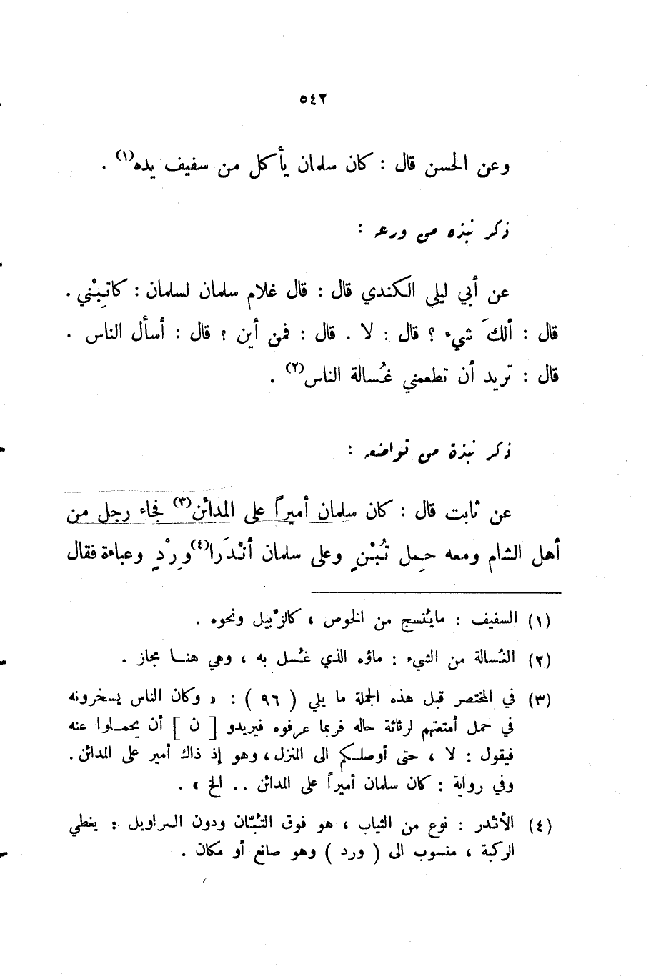 عن ثابت قال كان سلمان أميرا على المدائن فجاء رجل من أهل الشام ومعه حمل تبن وعلى سلمان أندرا ورد وعباءة فقال