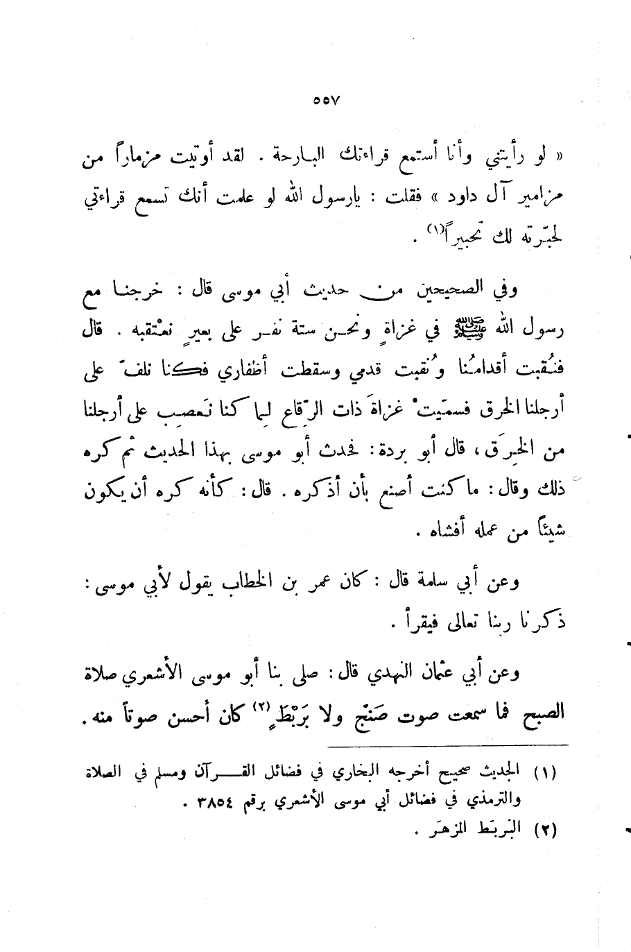 لو رأيتني وأنا أستمع قراءتك البارحة لقد أوتيت مزمارا من مزامير آل داود فقلت يا رسول الله لو علمت أنك تسمع قراءتي لحبرته لك تحبيرا