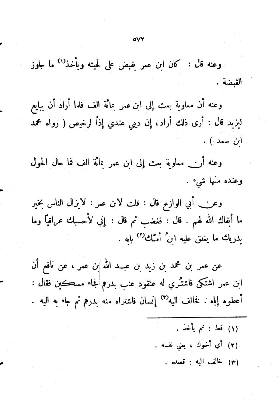 وعنه أن معاوية بعث إلى ابن عمر بمائة الف فما حال الحول وعنده منها شيء