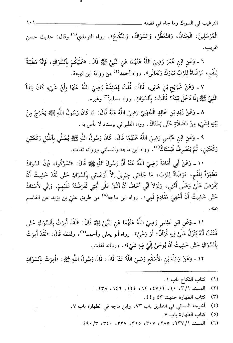 324 - وَعَن ابْن عمر رَضِي الله عَنْهُمَا عَن النَّبِي صلى الله عَلَيْهِ وَسلم قَالَ عَلَيْكُم بِالسِّوَاكِ فَإِنَّهُ مطيبة للفم مرضاة للرب تبَارك وَتَعَالَى
