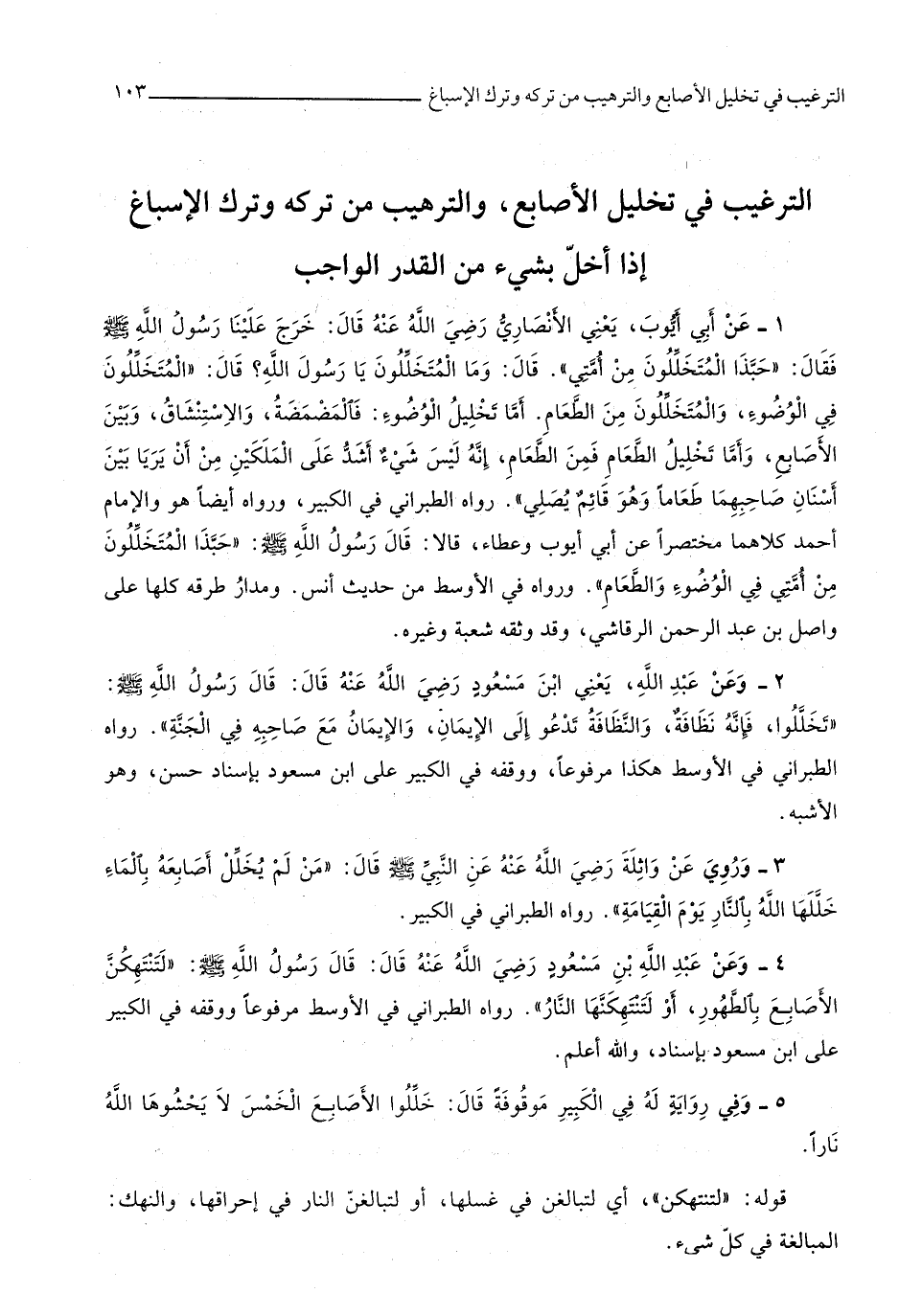 11 - التَّرْغِيب فِي تَخْلِيل الْأَصَابِع والترهيب من تَركه وَترك الإسباغ إِذا أخل بِشَيْء من الْقدر الْوَاجِب