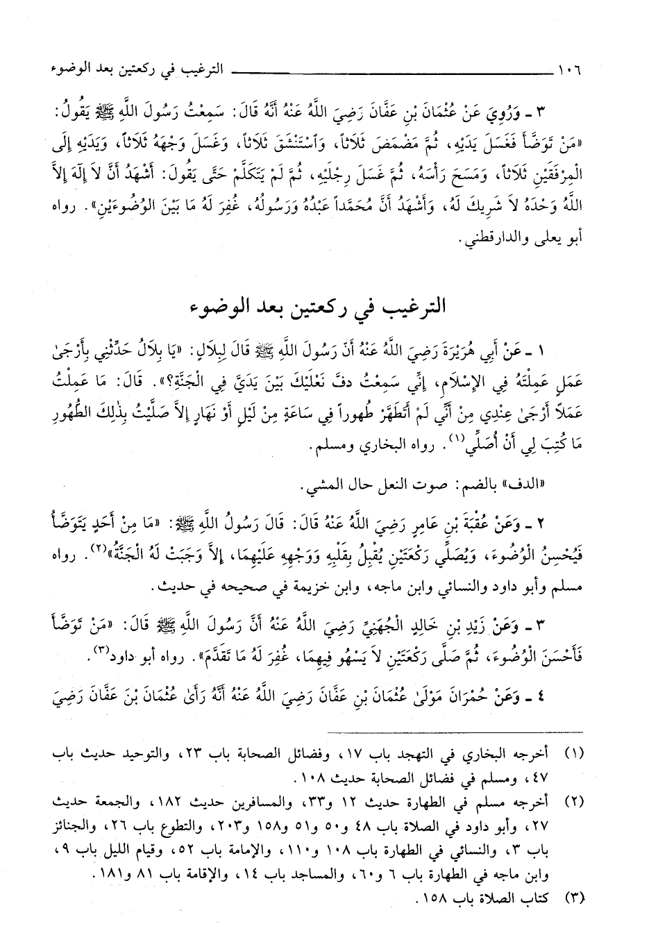 13 - التَّرْغِيب فِي رَكْعَتَيْنِ بعد الْوضُوء