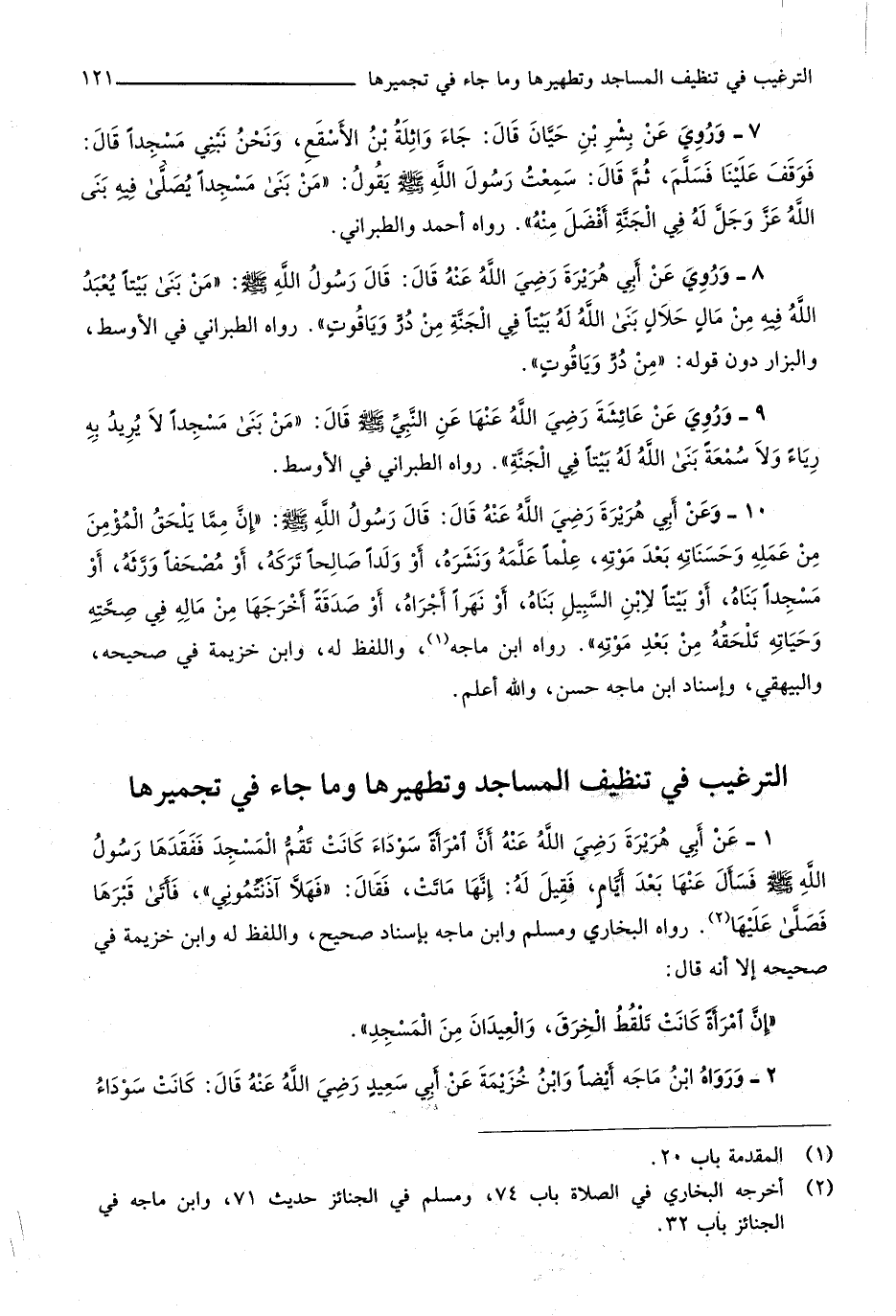 420 - وَرُوِيَ عَن بشر بن حَيَّان قَالَ جَاءَ وَاثِلَة بن الْأَسْقَع وَنحن نَبْنِي مَسْجِدا قَالَ فَوقف علينا فَسلم ثمَّ قَالَ سَمِعت رَسُول الله صلى الله عَلَيْهِ وَسلم يَقُول من بنى مَسْجِدا يصلى فِيهِ بنى الله عز وَجل لَهُ فِي الْجنَّة أفضل مِنْهُ