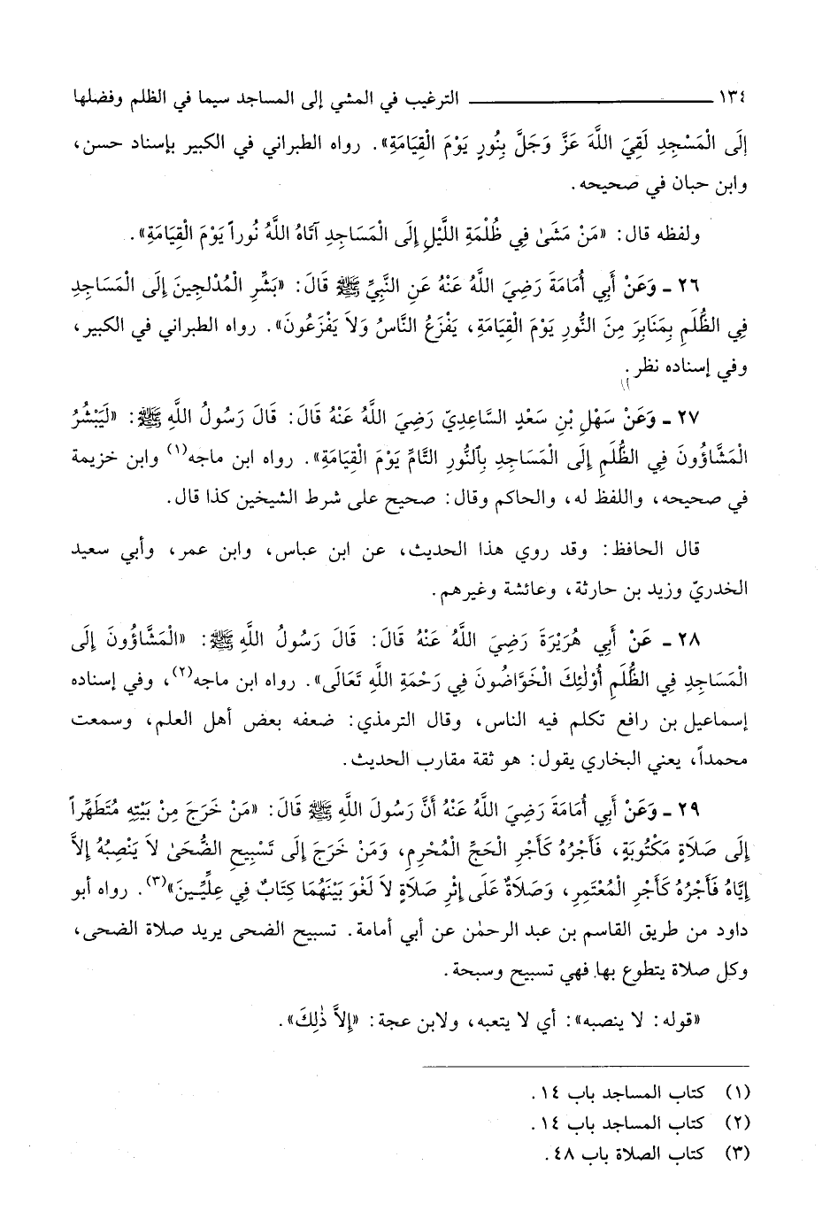 482 - وَعَن أبي أُمَامَة رَضِي الله عَنهُ عَن النَّبِي صلى الله عَلَيْهِ وَسلم قَالَ بشر المدلجين إِلَى الْمَسَاجِد فِي الظُّلم بمنابر من النُّور يَوْم الْقِيَامَة يفزع النَّاس وَلَا يفزعون
