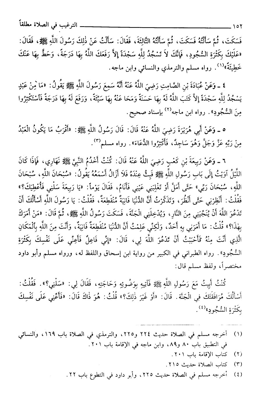 564 - وَعَن ربيعَة بن كَعْب رَضِي الله عَنهُ قَالَ كنت أخدم النَّبِي صلى الله عَلَيْهِ وَسلم نهاري فَإِذا كَانَ اللَّيْل آويت إِلَى بَاب رَسُول الله صلى الله عَلَيْهِ وَسلم فَبت عِنْده فَلَا أَزَال أسمعهُ يَقُول سُبْحَانَ الله سُبْحَانَ الله سُبْحَانَ رَبِّي حَتَّى أمل أَو تغلبني عَيْني فأنام فَقَالَ يَوْمًا يَا ربيعَة سلني فأعطيك فَقلت أَنْظرنِي حَتَّى أنظر وتذكرت أَن الدُّنْيَا فانية مُنْقَطِعَة فَقلت يَا رَسُول الله أَسأَلك أَن تَدْعُو الله أَن ينجيني من النَّار ويدخلني الْجنَّة فَسكت رَسُول الله صلى الله عَلَيْهِ وَسلم ثمَّ قَالَ من أَمرك بِهَذَا قلت مَا أَمرنِي بِهِ أحد وَلَكِنِّي علمت أَن الدُّنْيَا مُنْقَطِعَة فانية وَأَنت من الله بِالْمَكَانِ الَّذِي أَنْت مِنْهُ فَأَحْبَبْت أَن تَدْعُو الله لي قَالَ إِنِّي فَاعل فأعني على نَفسك بِكَثْرَة السُّجُود