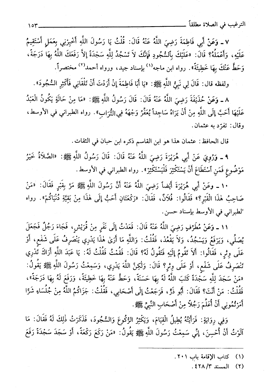 569 - وَعَن مطرف رَضِي الله عَنهُ قَالَ قعدت إِلَى نفر من قُرَيْش فجَاء رجل فَجعل يُصَلِّي وَيرْفَع وَيسْجد وَلَا يقْعد فَقلت وَالله مَا أرى هَذَا يدْرِي ينْصَرف على شفع أَو على وتر فَقَالُوا أَلا تقوم إِلَيْهِ فَتَقول لَهُ قَالَ فَقُمْت فَقلت لَهُ يَا عبد الله أَرَاك تَدْرِي تَنْصَرِف على شفع أَو على وتر قَالَ وَلَكِن الله يدْرِي وَسمعت رَسُول الله صلى الله عَلَيْهِ وَسلم يَقُول من سجد لله سَجْدَة كتب الله لَهُ بهَا حَسَنَة وَحط عَنهُ بهَا خَطِيئَة وَرفع لَهُ بهَا دَرَجَة فَقلت من أَنْت فَقَالَ أَبُو ذَر فَرَجَعت إِلَى أَصْحَابِي فَقلت جزاكم الله من جلساء شرا أَمرْتُمُونِي أَن أعلم رجلا من أَصْحَاب النَّبِي صلى الله عَلَيْهِ وَسلم