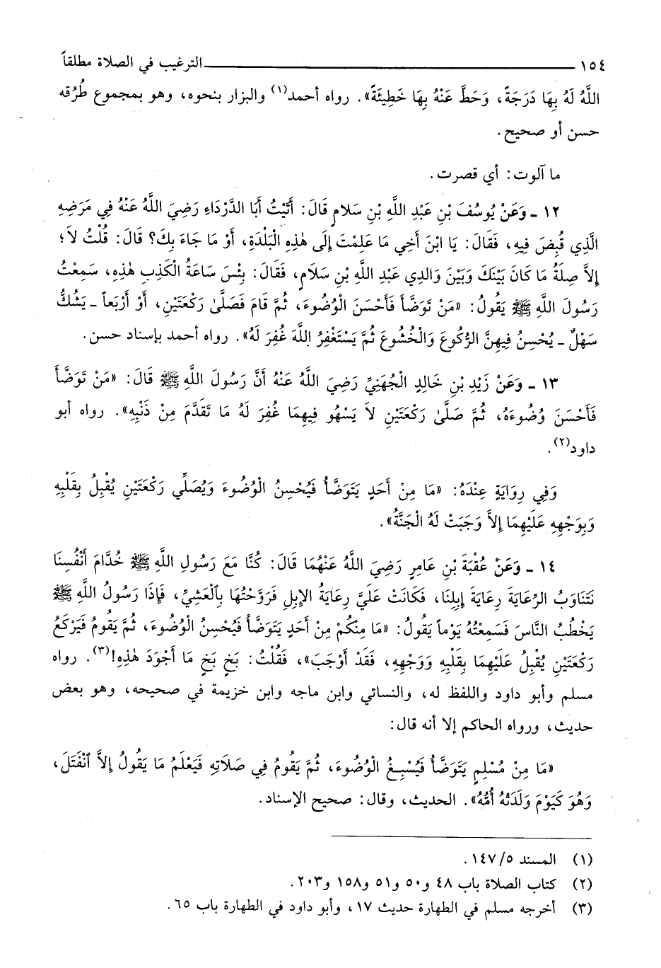 570 - وَعَن يُوسُف بن عبد الله بن سَلام قَالَ أتيت أَبَا الدَّرْدَاء رَضِي الله عَنهُ فِي مَرضه الَّذِي قبض فِيهِ فَقَالَ يَا ابْن أخي مَا علمت إِلَى هَذِه الْبَلدة أَو مَا جَاءَ بك قَالَ قلت لَا إِلَّا صلَة مَا كَانَ بَيْنك وَبَين وَالِدي عبد الله بن سَلام فَقَالَ بئس سَاعَة الْكَذِب هَذِه سَمِعت رَسُول الله صلى الله عَلَيْهِ وَسلم يَقُول من تَوَضَّأ فَأحْسن الْوضُوء ثمَّ قَامَ فصلى رَكْعَتَيْنِ أَو أَرْبعا يشك سهل يحسن فِيهِنَّ الرُّكُوع والخشوع ثمَّ يسْتَغْفر الله غفر لَهُ