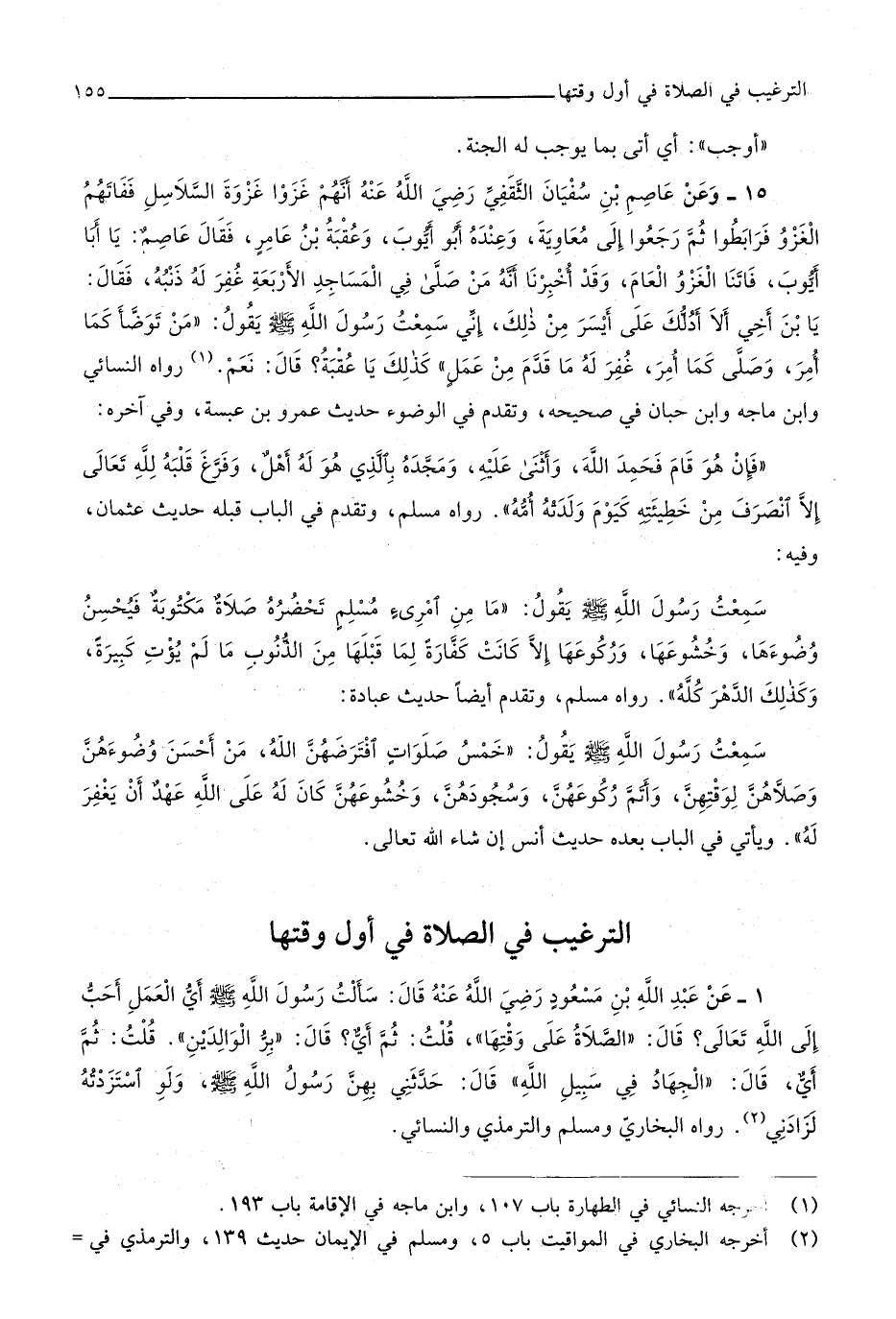 15 - التَّرْغِيب فِي الصَّلَاة فِي أول وَقتهَا