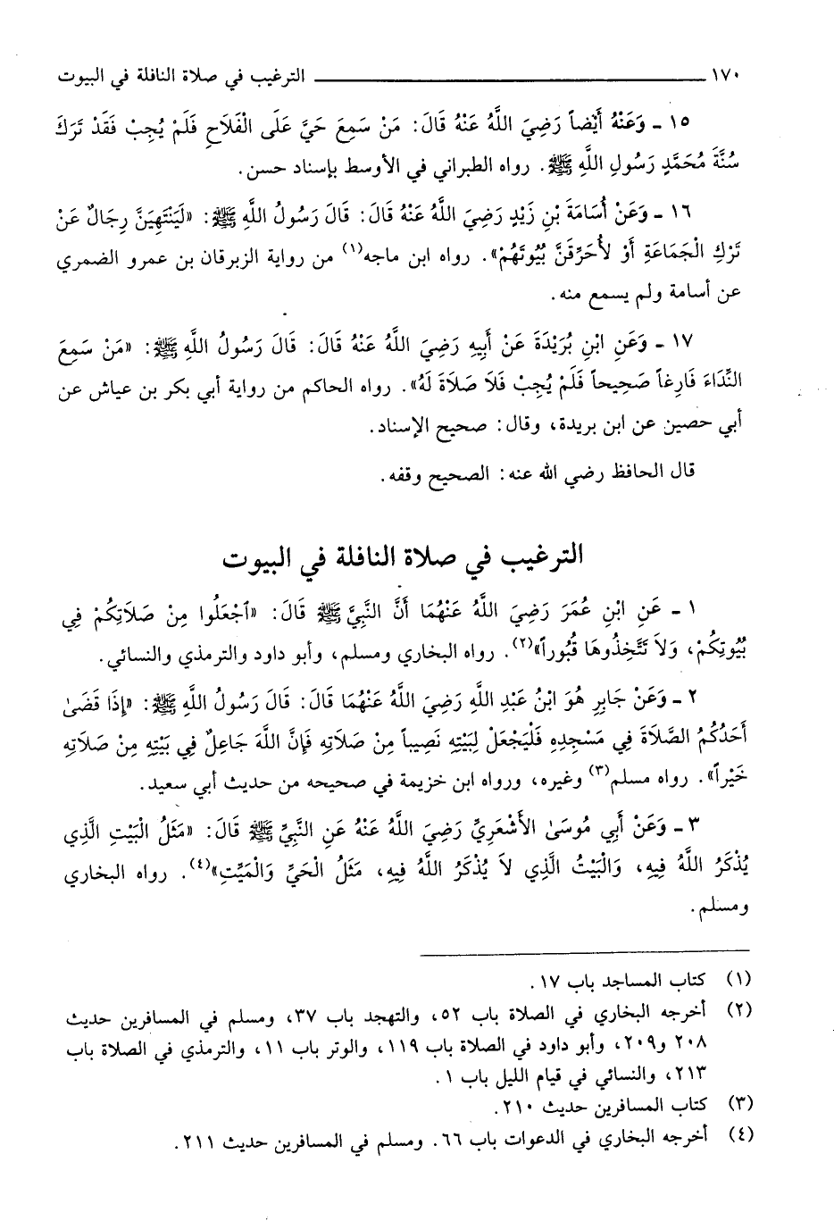 630 - وَعنهُ أَيْضا رَضِي الله عَنهُ قَالَ من سمع حَيّ على الْفَلاح فَلم يجب فقد ترك سنة مُحَمَّد رَسُول الله صلى الله عَلَيْهِ وَسلم