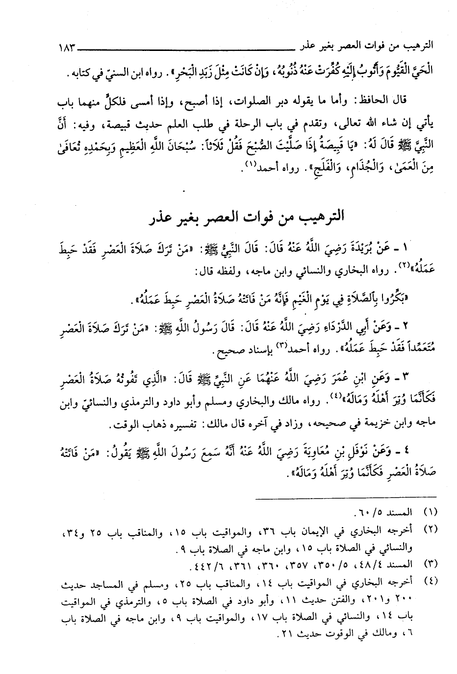 26 - التَّرْهِيب من فَوَات الْعَصْر بِغَيْر عذر