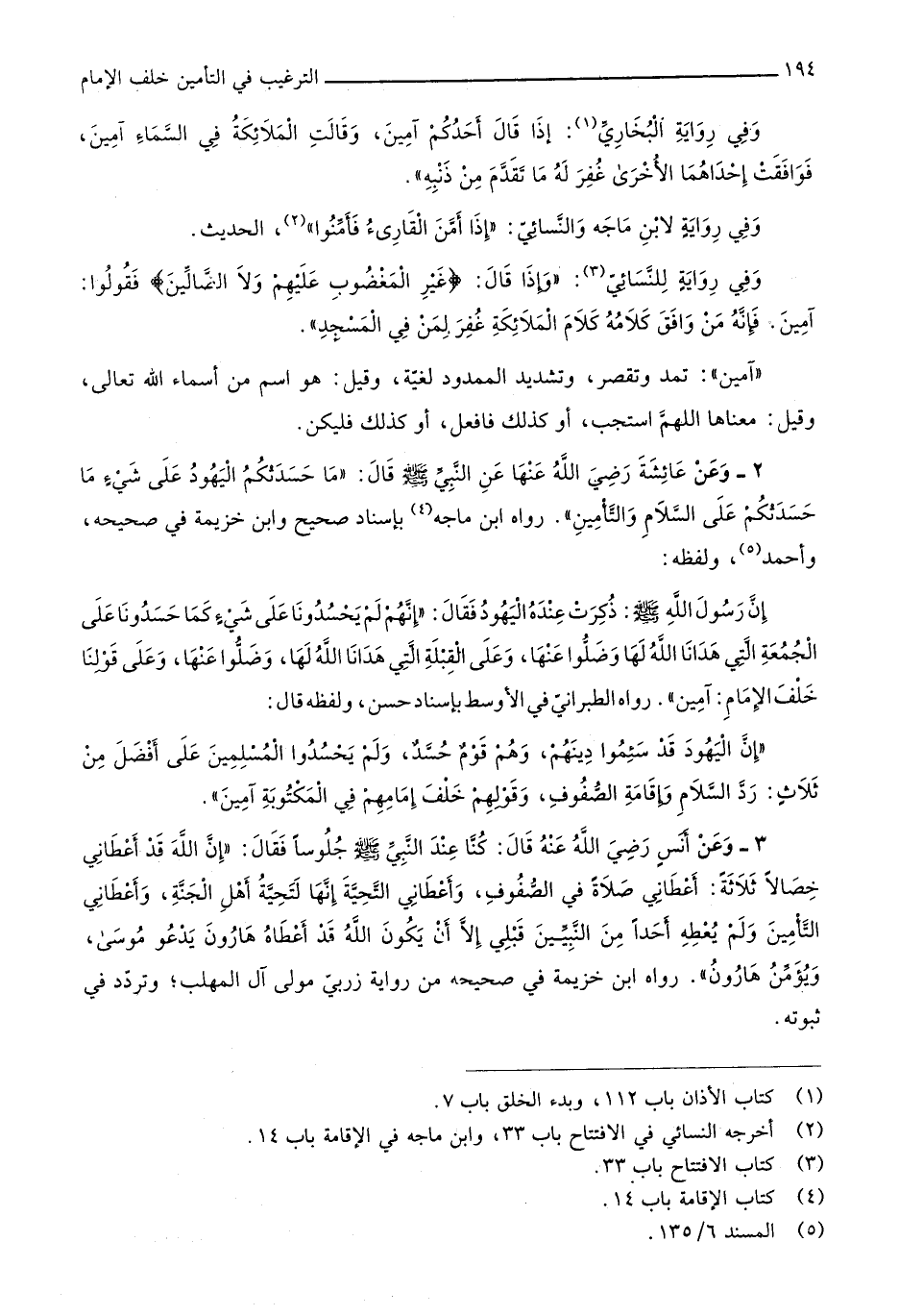 رَوَاهُ الطَّبَرَانِيّ فِي الْأَوْسَط بِإِسْنَاد حسن وَلَفظه قَالَ إِن الْيَهُود قد سئموا دينهم وهم قوم حسد وَلم يحسدوا الْمُسلمين على أفضل من ثَلَاث رد السَّلَام وَإِقَامَة الصُّفُوف وَقَوْلهمْ خلف إمَامهمْ فِي الْمَكْتُوبَة آمين