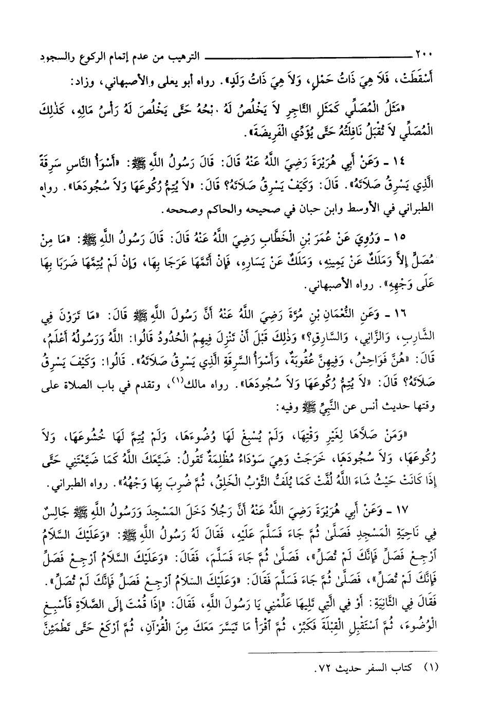قَالُوا وَكَيف يسرق صلَاته قَالَ لَا يتم ركوعها وَلَا سجودها