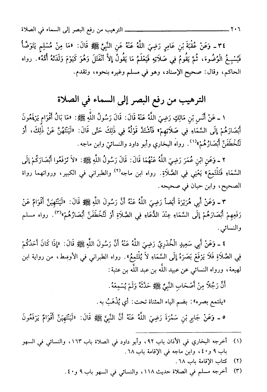 8 - التَّرْهِيب من رفع الْبَصَر إِلَى السَّمَاء فِي الصَّلَاة