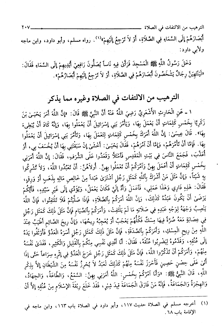 9 - التَّرْهِيب من الِالْتِفَات فِي الصَّلَاة وَغَيره مِمَّا يذكر