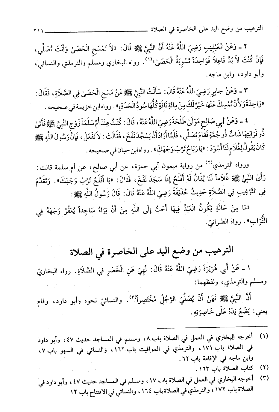 11 - التَّرْهِيب من وضع الْيَد على الخاصرة فِي الصَّلَاة