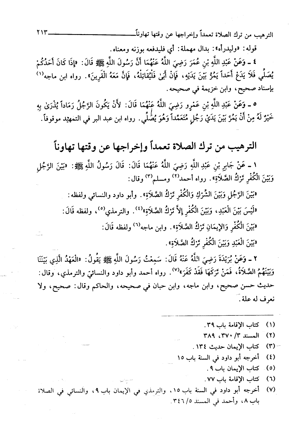 التَّرْهِيب من ترك الصَّلَاة تعمدا وإخراجها عَن وَقتهَا تهاونا