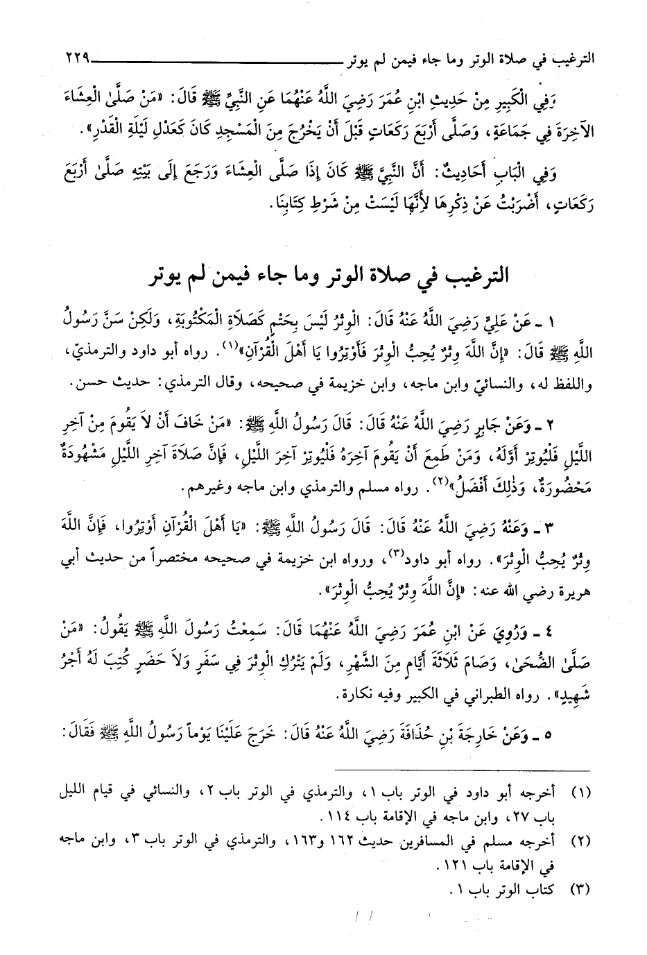 التَّرْغِيب فِي صَلَاة الْوتر وَمَا جَاءَ فِيمَن لم يُوتر