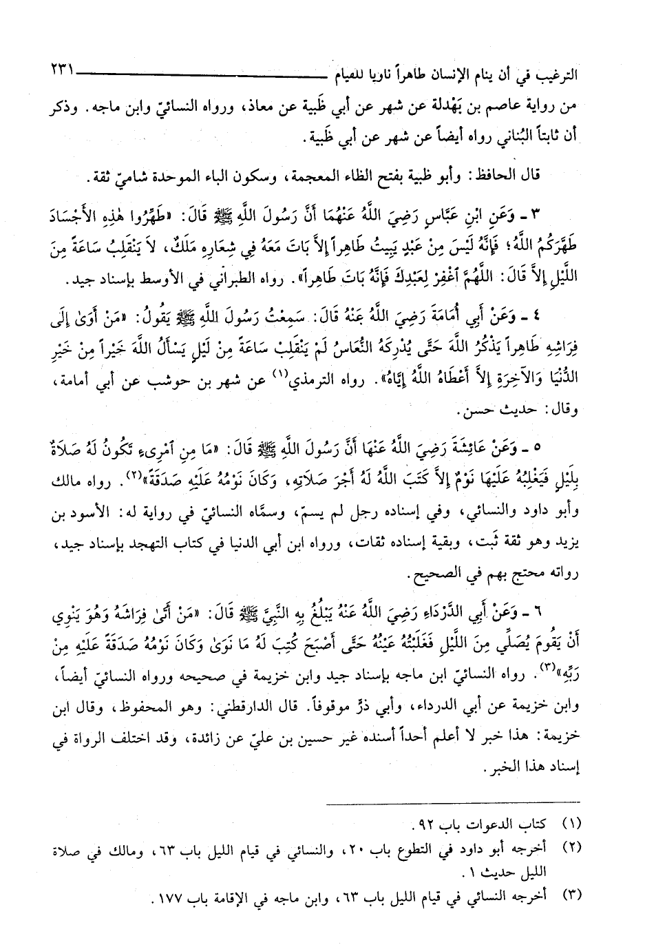 رَوَاهُ مَالك وَأَبُو دَاوُد وَالنَّسَائِيّ وَفِي إِسْنَاده رجل لم يسم وَسَماهُ النَّسَائِيّ فِي رِوَايَة لَهُ الْأسود بن يزِيد وَهُوَ ثِقَة ثَبت وَبَقِيَّة إِسْنَاده ثِقَات وَرَوَاهُ ابْن أبي الدُّنْيَا فِي كتاب التَّهَجُّد بِإِسْنَاد جيد رُوَاته مُحْتَج بهم فِي الصَّحِيح