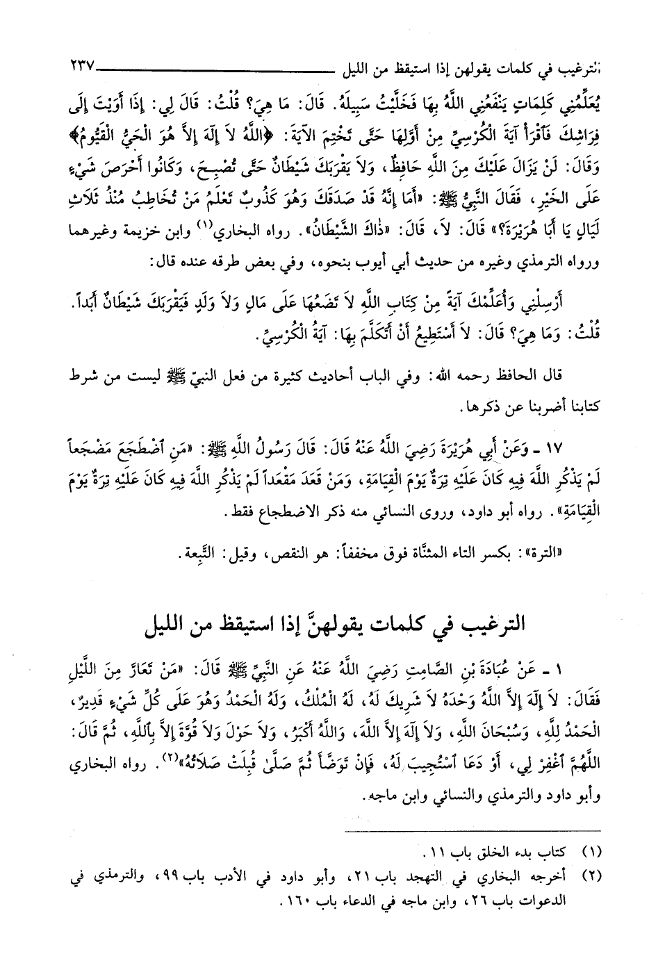 10 - التَّرْغِيب فِي كَلِمَات يقولهن إِذا اسْتَيْقَظَ من اللَّيْل