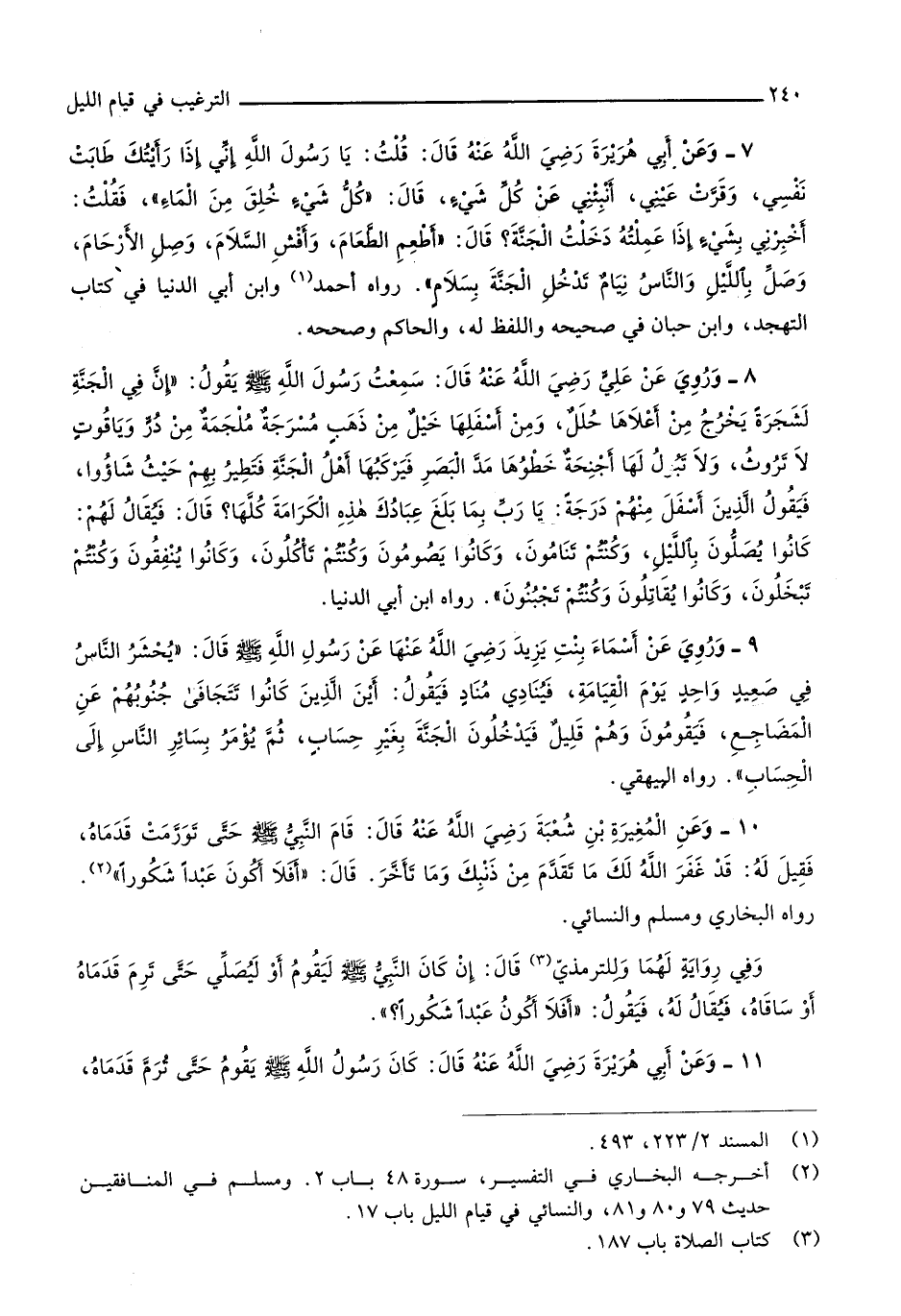رَوَاهُ أَحْمد وَابْن أبي الدُّنْيَا فِي كتاب التَّهَجُّد وَابْن حبَان فِي صَحِيحه وَاللَّفْظ لَهُ وَالْحَاكِم وَصَححهُ