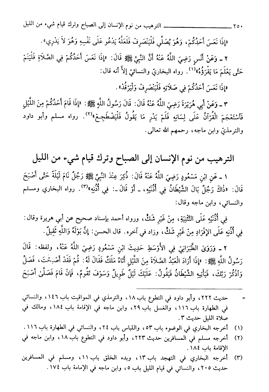 952 - عَن ابْن مَسْعُود رَضِي الله عَنهُ قَالَ ذكر عِنْد النَّبِي صلى الله عَلَيْهِ وَسلم رجل نَام لَيْلَة حَتَّى أصبح قَالَ ذَاك رجل بَال الشَّيْطَان فِي أُذُنَيْهِ أَو قَالَ فِي أُذُنه