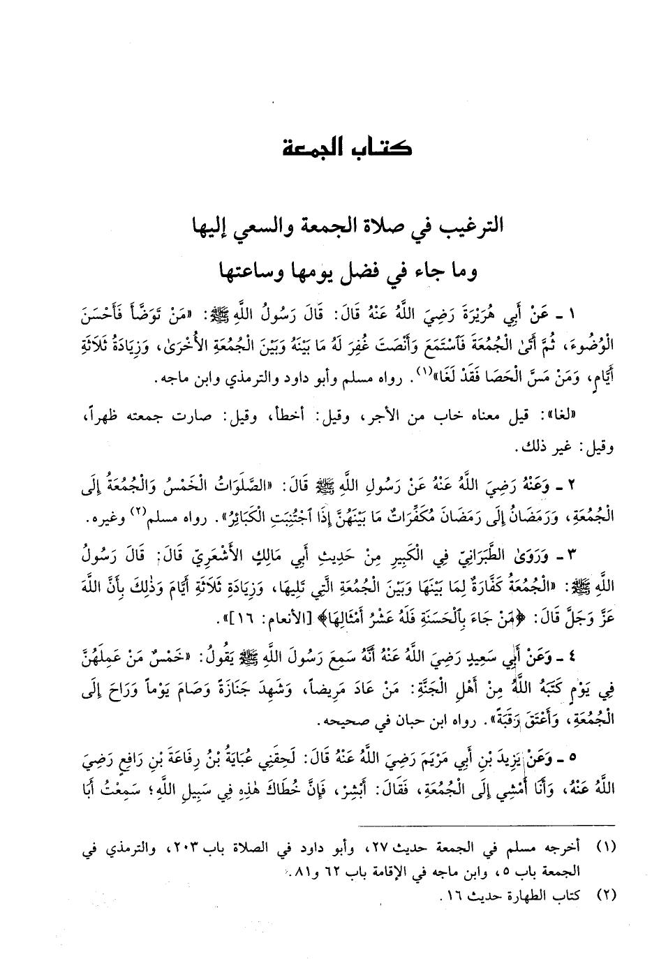1029 - وَعَن يزِيد بن أبي مَرْيَم رَضِي الله عَنهُ قَالَ لَحِقَنِي عَبَايَة بن رِفَاعَة بن رَافع رَضِي الله عَنهُ وَأَنا أَمْشِي إِلَى الْجُمُعَة فَقَالَ أبشر فَإِن خطاك هَذِه فِي سَبِيل الله سَمِعت أَبَا