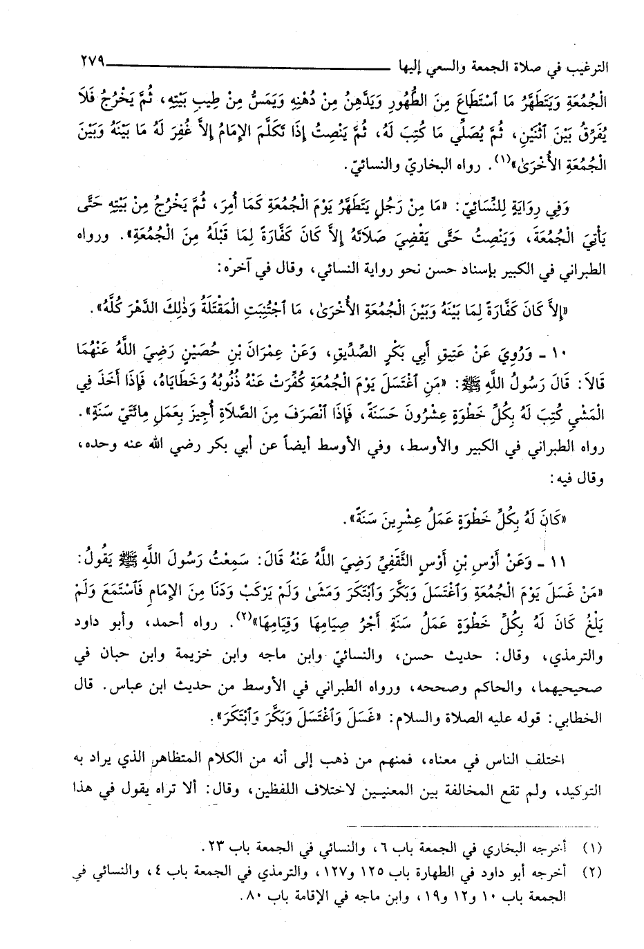 1034 - وَرُوِيَ عَن عَتيق أبي بكر الصّديق وَعَن عمرَان بن حُصَيْن رَضِي الله عَنْهُمَا قَالَا قَالَ رَسُول الله صلى الله عَلَيْهِ وَسلم من اغْتسل يَوْم الْجُمُعَة كفرت عَنهُ ذنُوبه وخطاياه فَإِذا أَخذ فِي الْمَشْي كتب لَهُ بِكُل خطْوَة عشرُون حَسَنَة فَإِذا انْصَرف من الصَّلَاة أُجِيز بِعَمَل مِائَتي سنة