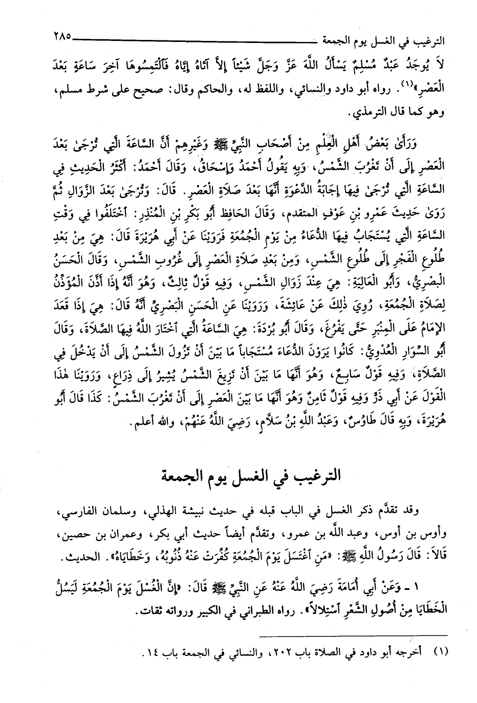 22 - التَّرْغِيب فِي الْغسْل يَوْم الْجُمُعَة وَقد تقدم ذكر الْغسْل فِي الْبَاب قبله فِي حَدِيث نُبَيْشَة الْهُذلِيّ وسلمان الْفَارِسِي وَأَوْس بن أَوْس وَعبد الله بن عَمْرو وَتقدم أَيْضا حَدِيث أبي بكر وَعمْرَان بن حُصَيْن قَالَا قَالَ رَسُول الله صلى الله عَلَيْهِ وَسلم من اغْتسل يَوْم الْجُمُعَة كفرت عَنهُ ذنُوبه وخطاياه
