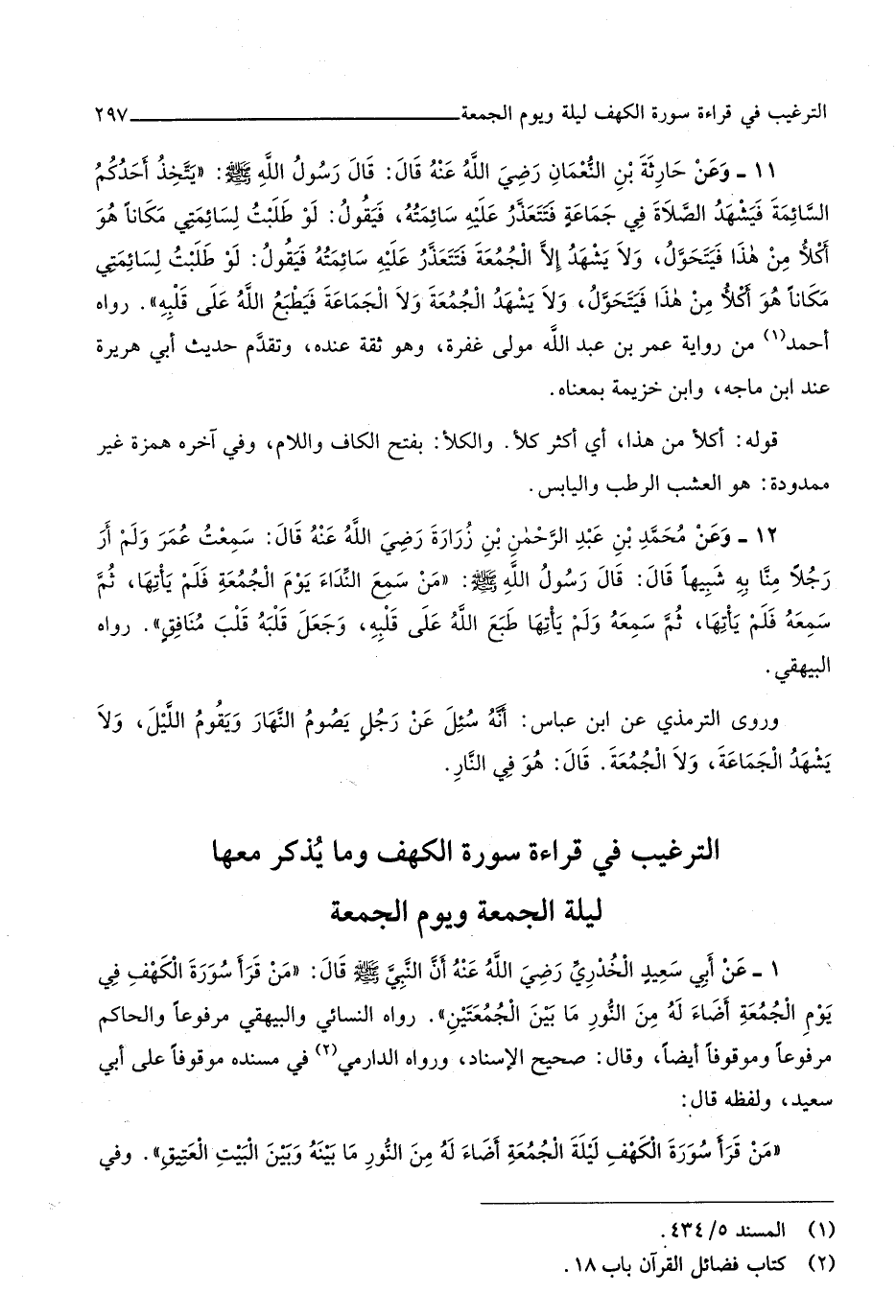 5 - التَّرْغِيب فِي قِرَاءَة سُورَة الْكَهْف وَمَا يذكر مَعهَا لَيْلَة الْجُمُعَة وَيَوْم الْجُمُعَة