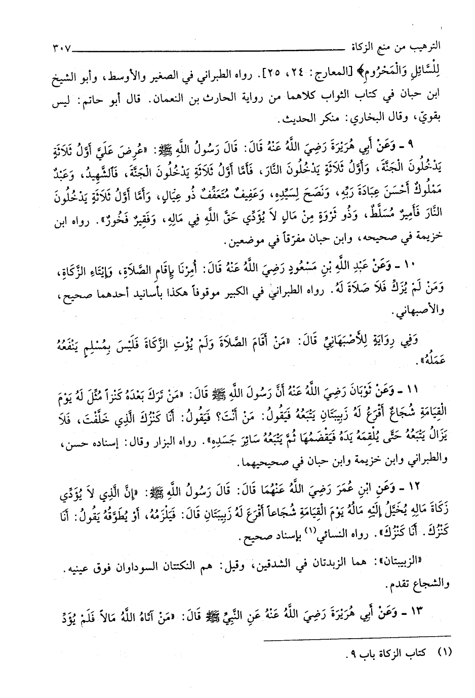 1138 - وَعَن أبي هُرَيْرَة رَضِي الله عَنهُ عَن النَّبِي صلى الله عَلَيْهِ وَسلم أَقرع لَهُ زَبِيبَتَانِ يطوقه يَوْم الْقِيَامَة ثمَّ يَأْخُذ بِلِهْزِمَتَيْهِ يَعْنِي شدقيه ثمَّ يَقُول أَنا مَالك أَنا كَنْزك ثمَّ تَلا هَذِه الْآيَة {وَلَا يَحسبن الَّذين يَبْخلُونَ} قَالَ من آتَاهُ الله مَالا فَلم يؤد