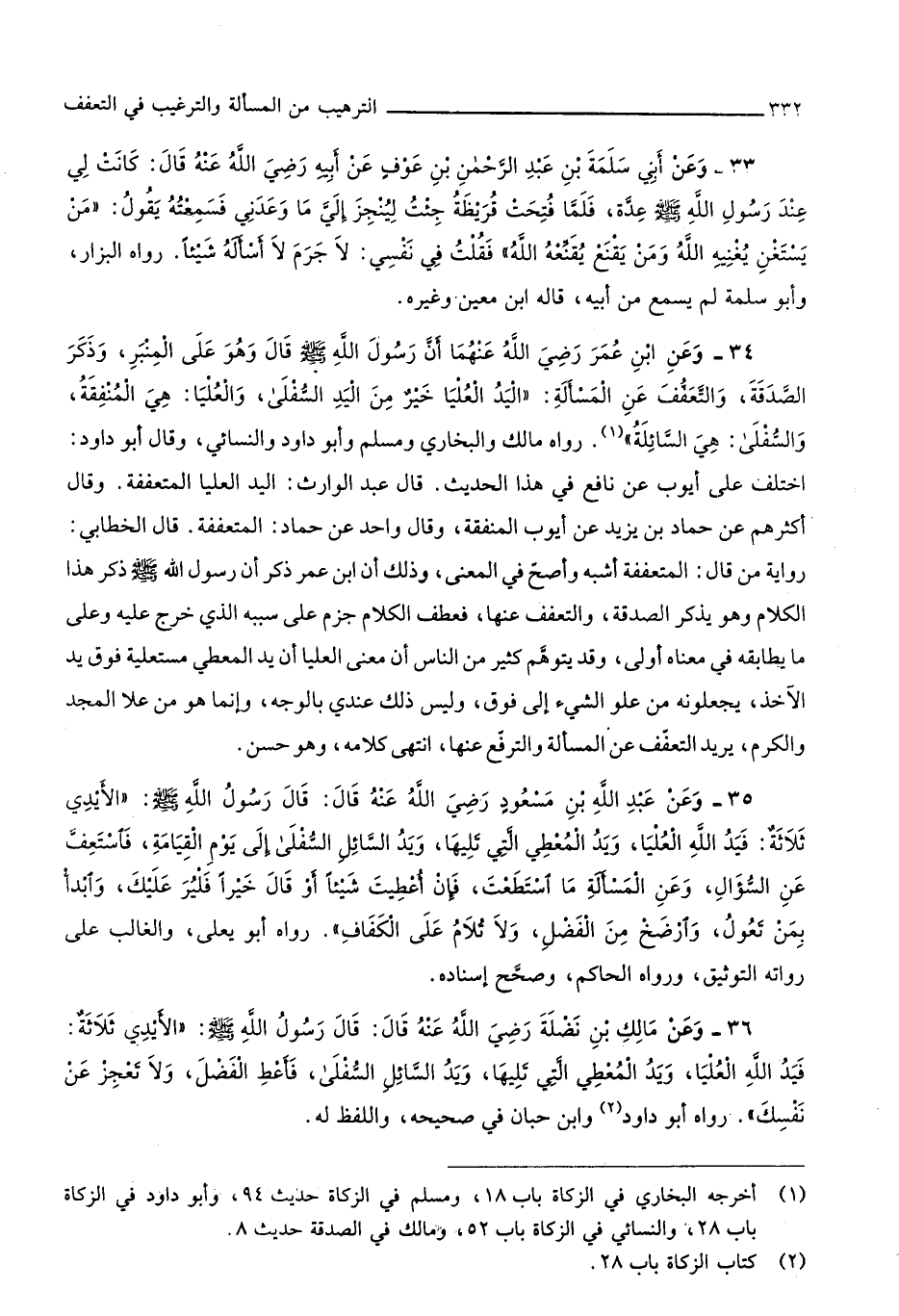1219 - وَعَن عبد الله بن مَسْعُود رَضِي الله عَنهُ قَالَ قَالَ رَسُول الله صلى الله عَلَيْهِ وَسلم الْأَيْدِي ثَلَاثَة فيد الله الْعليا وَيَد الْمُعْطِي الَّتِي تَلِيهَا وَيَد السَّائِل السُّفْلى إِلَى يَوْم الْقِيَامَة فاستعف عَن السُّؤَال وَعَن الْمَسْأَلَة مَا اسْتَطَعْت فَإِن أَعْطَيْت شَيْئا أَو قَالَ خيرا فلير عَلَيْك وابدأ بِمن تعول وارضخ من الْفضل وَلَا تلام على الكفاف