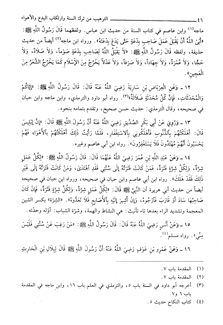88 - وَعَن الْعِرْبَاض بن سَارِيَة رَضِي الله عَنهُ قَالَ قَالَ رَسُول الله صلى الله عَلَيْهِ وَسلم إيَّاكُمْ والمحدثات فَإِن كل محدثة ضَلَالَة