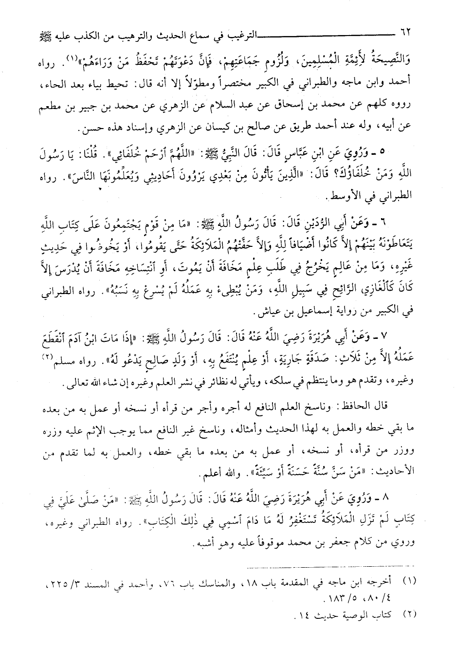 رَوَاهُ مُسلم وَغَيره وَتقدم هُوَ وَمَا يَنْتَظِم فِي سلكه وَيَأْتِي لَهُ نَظَائِر فِي نشر الْعلم وَغَيره إِن شَاءَ الله تَعَالَى