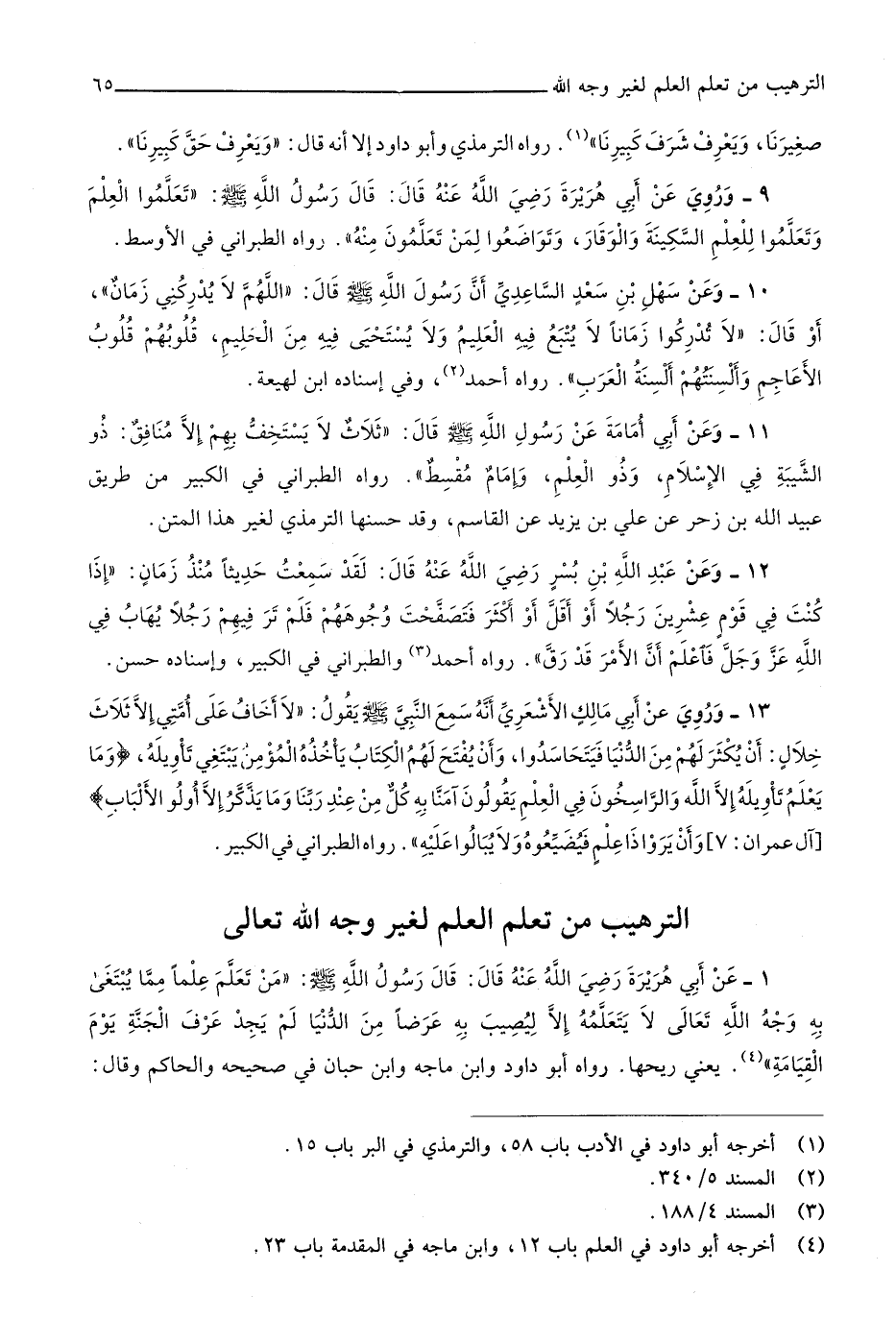 6 - التَّرْهِيب من تعلم الْعلم لغير وَجه الله تَعَالَى
