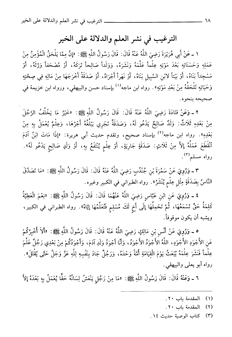 7 - التَّرْغِيب فِي نشر الْعلم وَالدّلَالَة على الْخَيْر