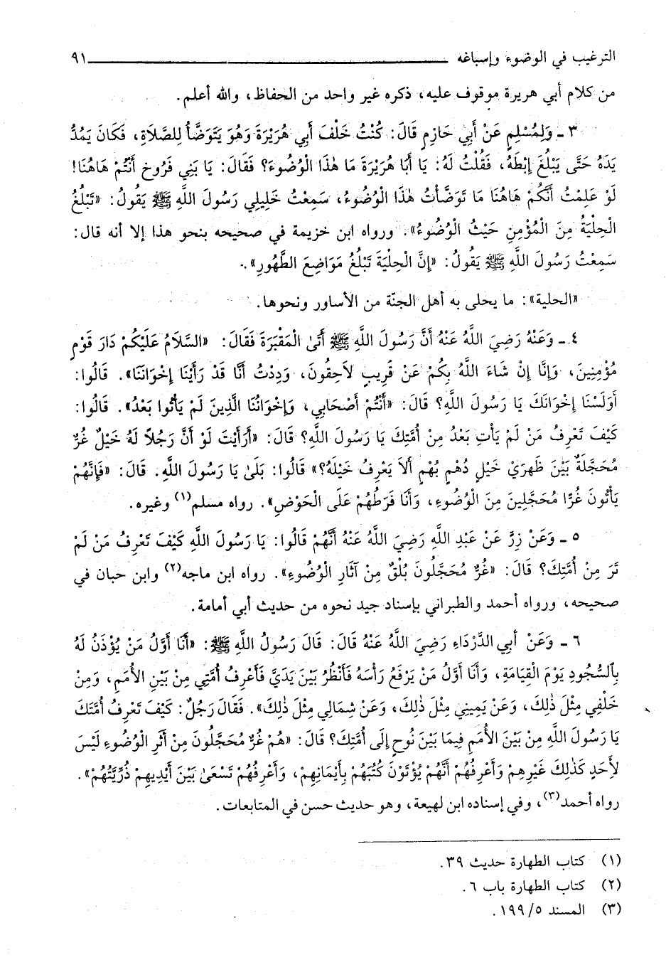 وَرَوَاهُ ابْن خُزَيْمَة فِي صَحِيحه بِنَحْوِ هَذَا إِلَّا أَنه قَالَ سَمِعت رَسُول الله صلى الله عَلَيْهِ وَسلم يَقُول إِن الْحِلْية تبلغ مَوَاضِع الطّهُور