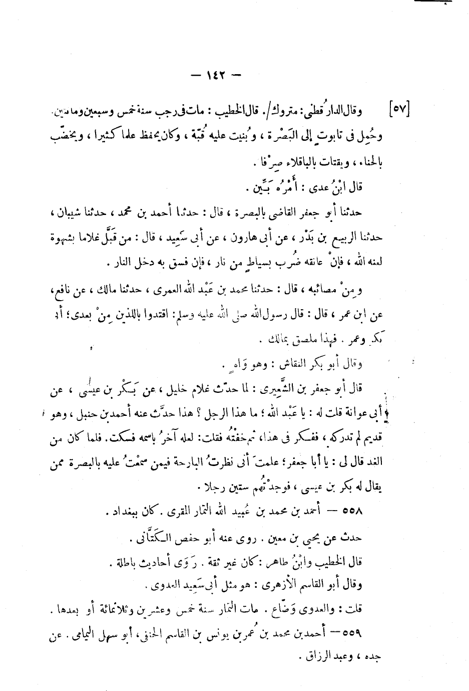 فلما كان من الغد قال لي: يا أبا جعفر، علمت أنى نظرت البارحة فيمن سمعت عليه بالبصرة ممن يقال له بكر بن عيسى، فوجدتهم ستين رجلا.