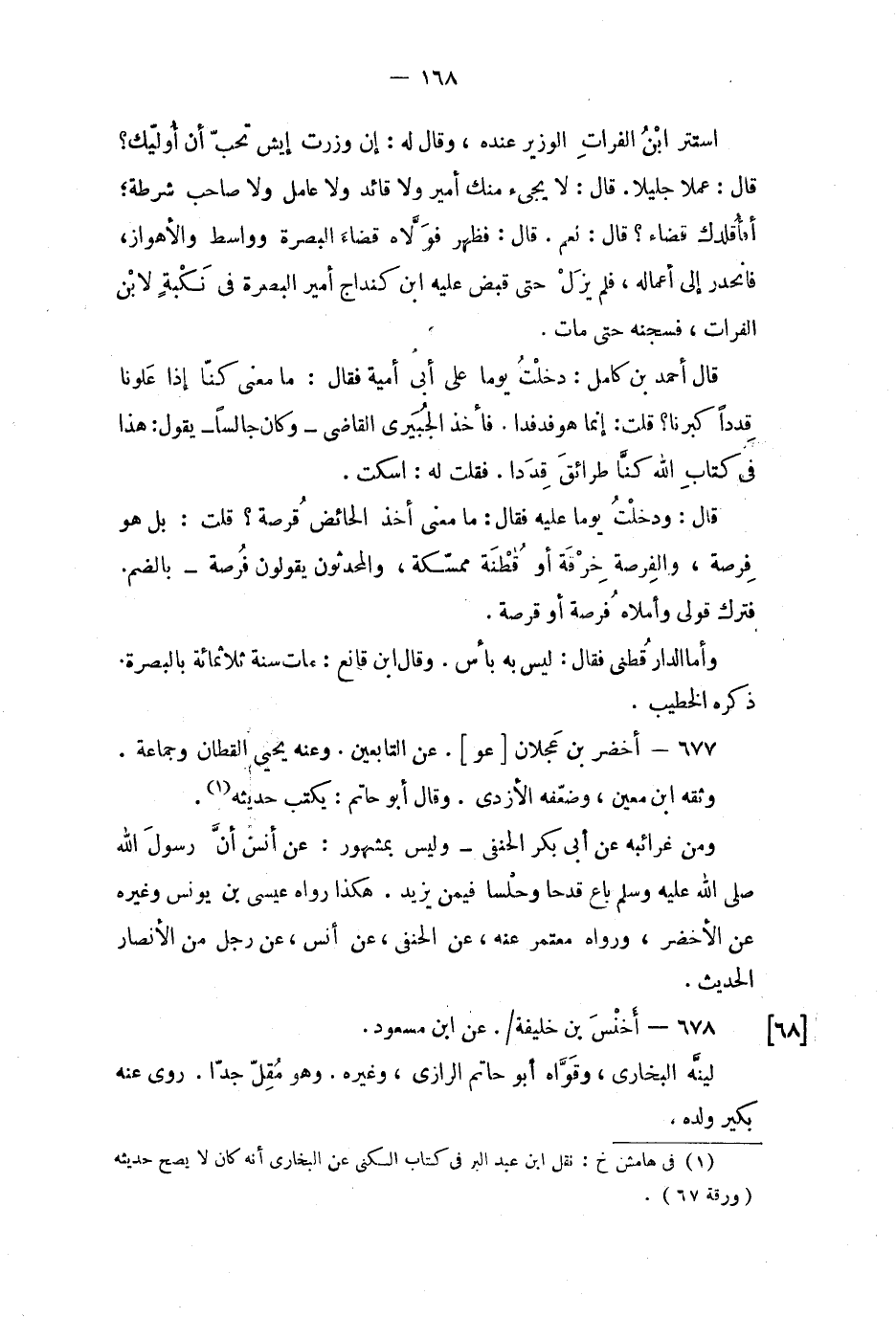 (1) في هامش خ: نقل ابن عبد البر في كتاب الكنى عن البخاري أنه كان لا يصح حديثه (ورقة 67) .