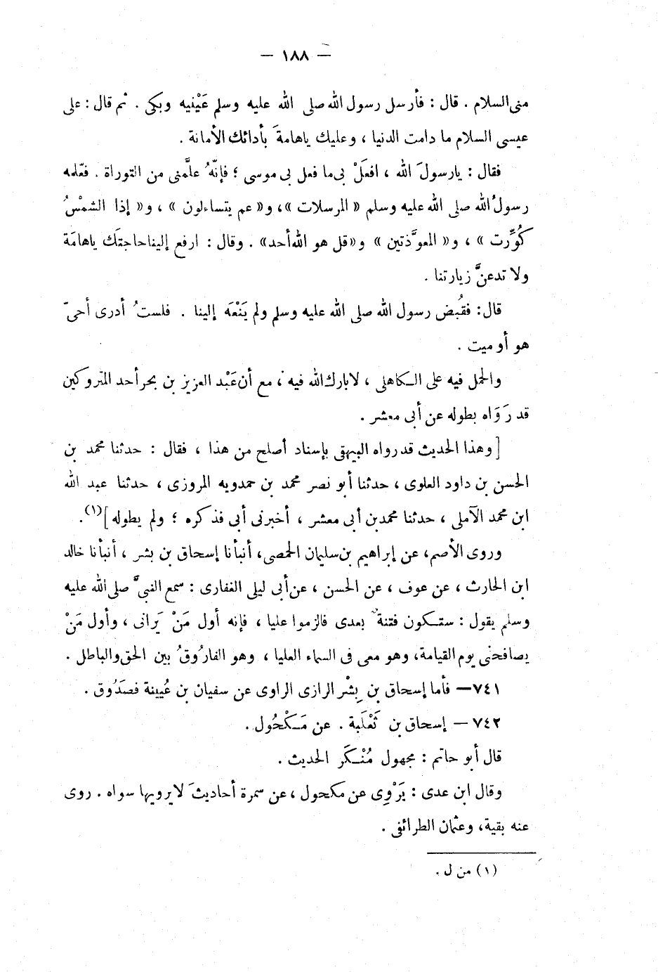 741 - فأما إسحاق بن بشر الرازي الراوي عن سفيان بن عيينة فصدوق.